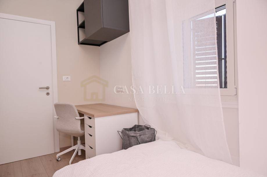 Stan se sastoji od dvije spavaće sobe, dnevnog boravka s kuhinjom te kupaonice. U potpunosti je renoviran, uredan i funkcionalan te spreman za odmah useljenje. Opremljen je klima-uređajem, optičkim internetom i MAXtv-om.