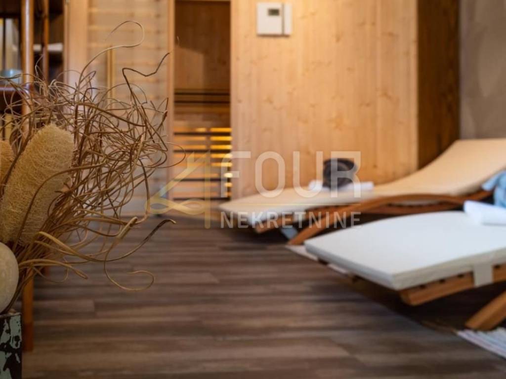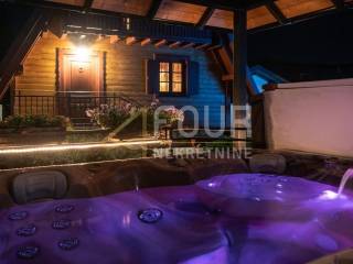 Prekrasno uređena i održavana okućnica bogata je različitim sadržajima poput bazena, vanjskog jacuzzija i dječjeg igrališta.