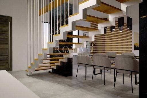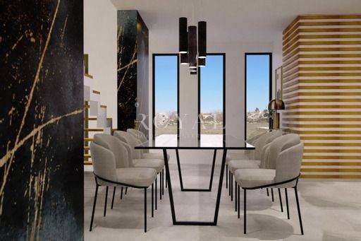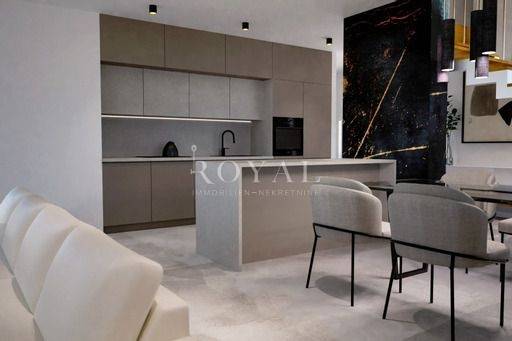 Moderna dizajnerska vila prodaje se potpuno namještena i opremljena vrhunskim uređajima, namještajem te svim ostalim pomno biranim detaljima koji ovu nekretninu čine posebnom i upečatljivom. Opremljene najkvalitetnijim boxspring ležajevima, By Mirage dizajnerske talijanske keramičke pločice s potpisom, satelitska i zemaljska antena s utičnicama u svim sobama i dnevnom boravku, talijanska vrata izrađena po mjeri,