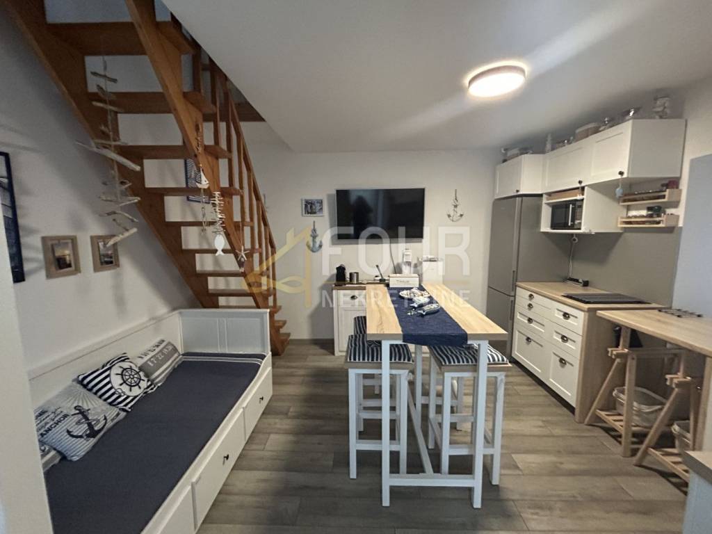 Ova pažljivo adaptirana starina prostire se na tri etaže i ukupno 55 m2 stambenog prostora, a pruža ugodan spoj tradicije i suvremenog komfora.