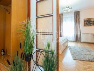 Na prodaju je etaža elegantne vile te zaseban studio apartman, smješteni u sklopu prostranog, pažljivo njegovanog vrta s garažom i vanjskim parkirnim mjestima.