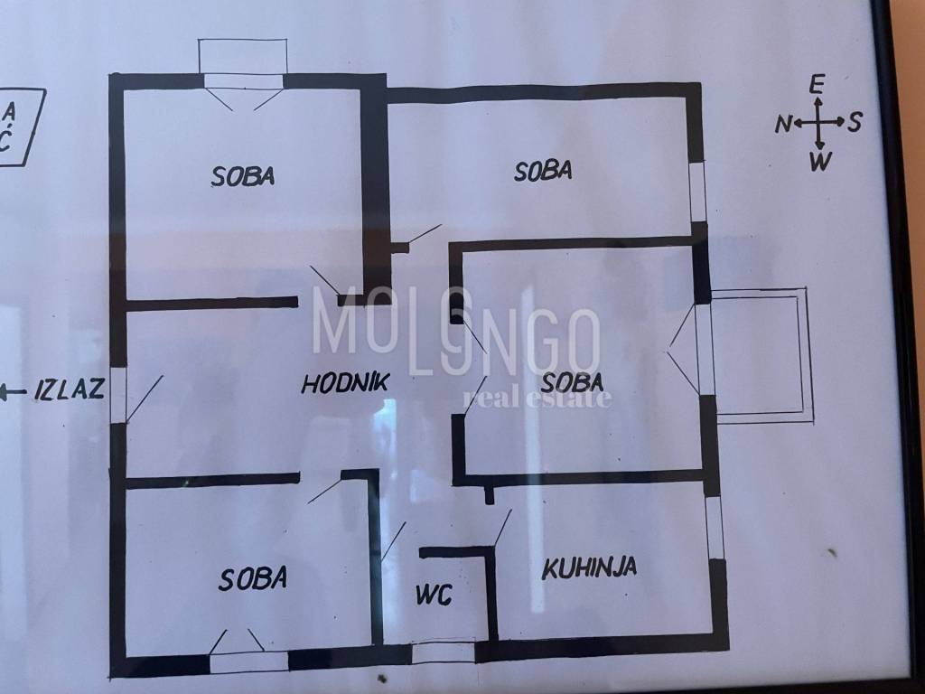 Stan se nalazi na prvom katu i obuhvaća površinu od 122,70 m². Sastoji se od tri spavaće sobe, prostranog dnevnog boravka, kuhinje s blagovaonicom, kupaonice, hodnika te dva balkona s prekrasnim pogledom na more. Kroz godine je pažljivo održavan, djelomično renoviran i vrlo malo korišten, te je odmah spreman za useljenje. Grijanje je centralno na lož ulje, a dodatnu udobnost pruža klima uređaj koji omogućuje i grijanje i hlađenje prostora.