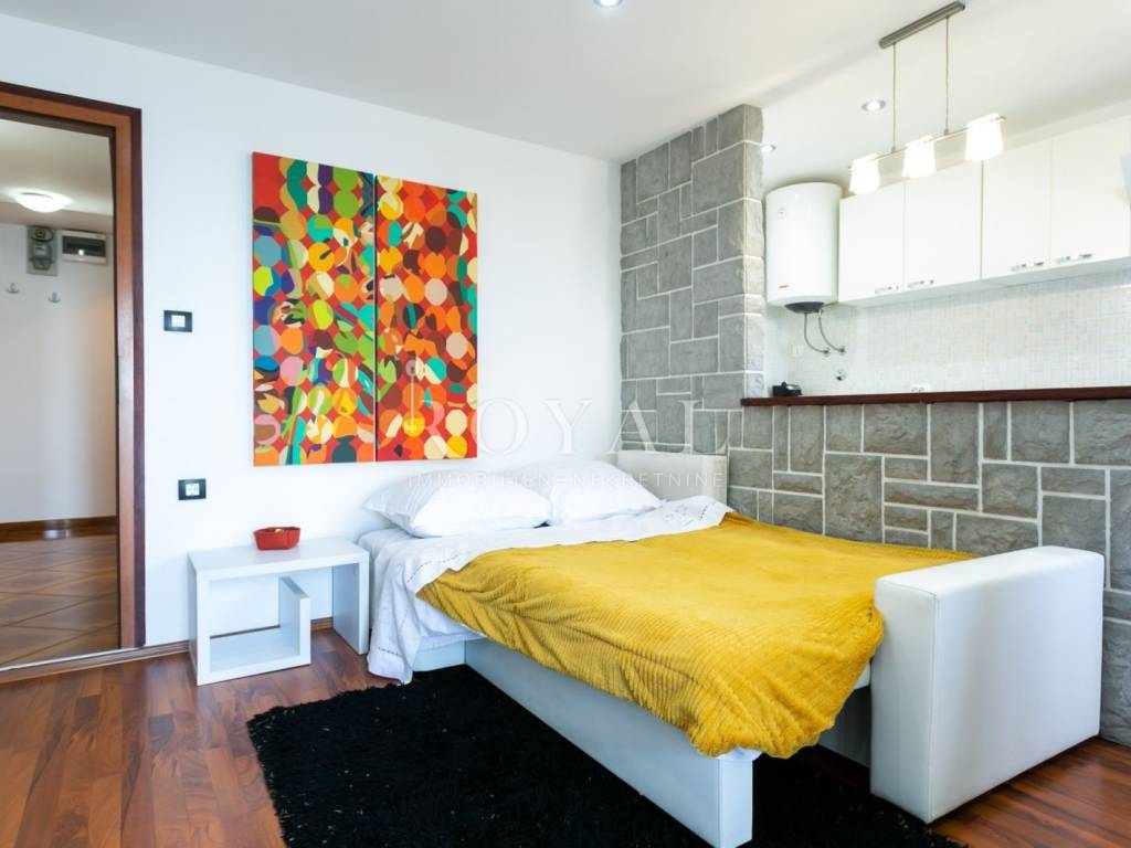 Stan je idealno osmišljen za ugodan život ili kao investicija. Sastoji se od jedne prostrane spavaće sobe, modernog dnevnog boravka koji je povezan sa blagovaonicom i kuhinjom, kupaonice i balkona koji pruža opuštajući pogled na more.