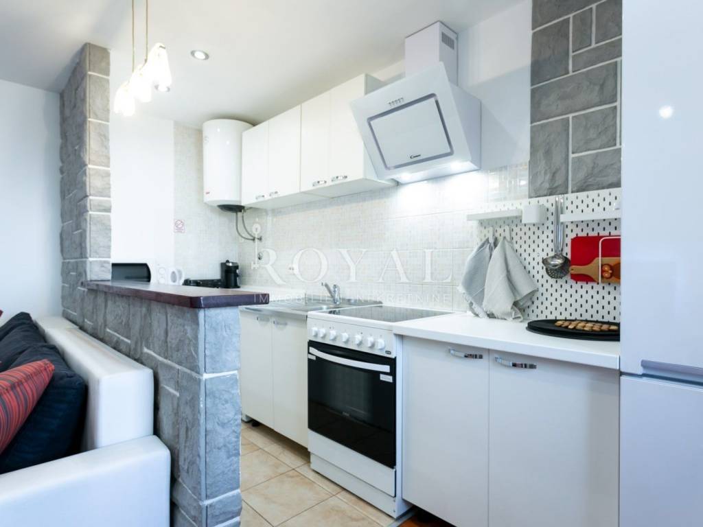 Ovaj šarmantan i potpuno namješten apartman nalazi se u jednoj od najatraktivnijih lokacija u Rijeci, naselje Pećine, poznatom po svojim prekrasnim plažama i blizini centra grada. Smješten u prvom redu do mora, apartman nudi izuzetan pogled na more koji se proteže iz dnevnog boravka i balkona. Stan je veličine 35,5m2 unutarnji prostor + 6,3m2 balkona, ukupno 41m2.