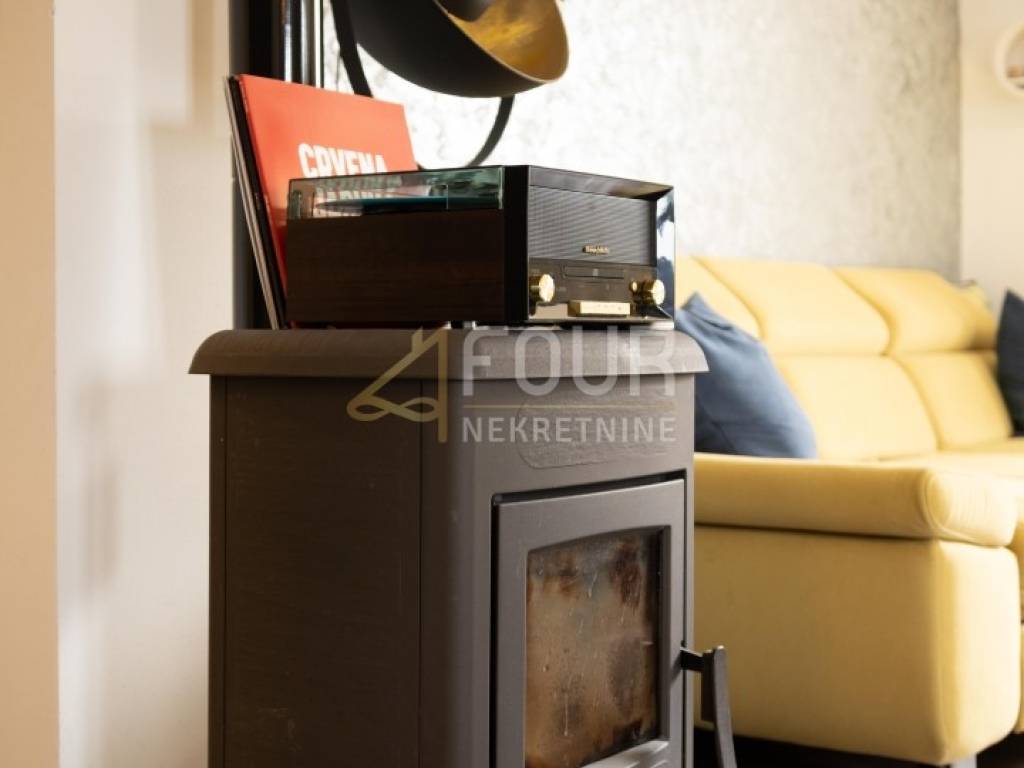 U dnevnom boravku nalazi se peć na drva za dodatni ugođaj tijekom zimskih mjeseci, a ugrađen je i klima inverter uređaj za hlađenje i grijanje.