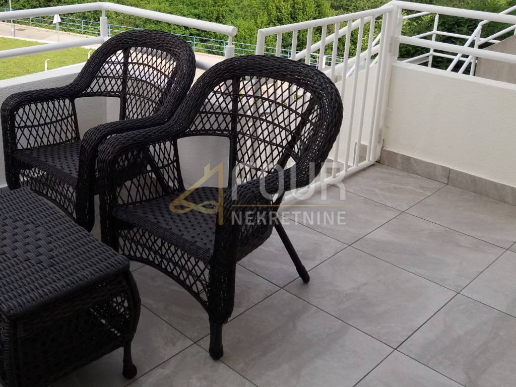Sastoji se od ulaznog balkona, zasebne kuhinje, prostranog dnevnog boravka s izlazom na lođu i balkon s pogledom na more, dvije komforne spavaće sobe, velike kupaonice s kadom i gostinjskog toaleta.