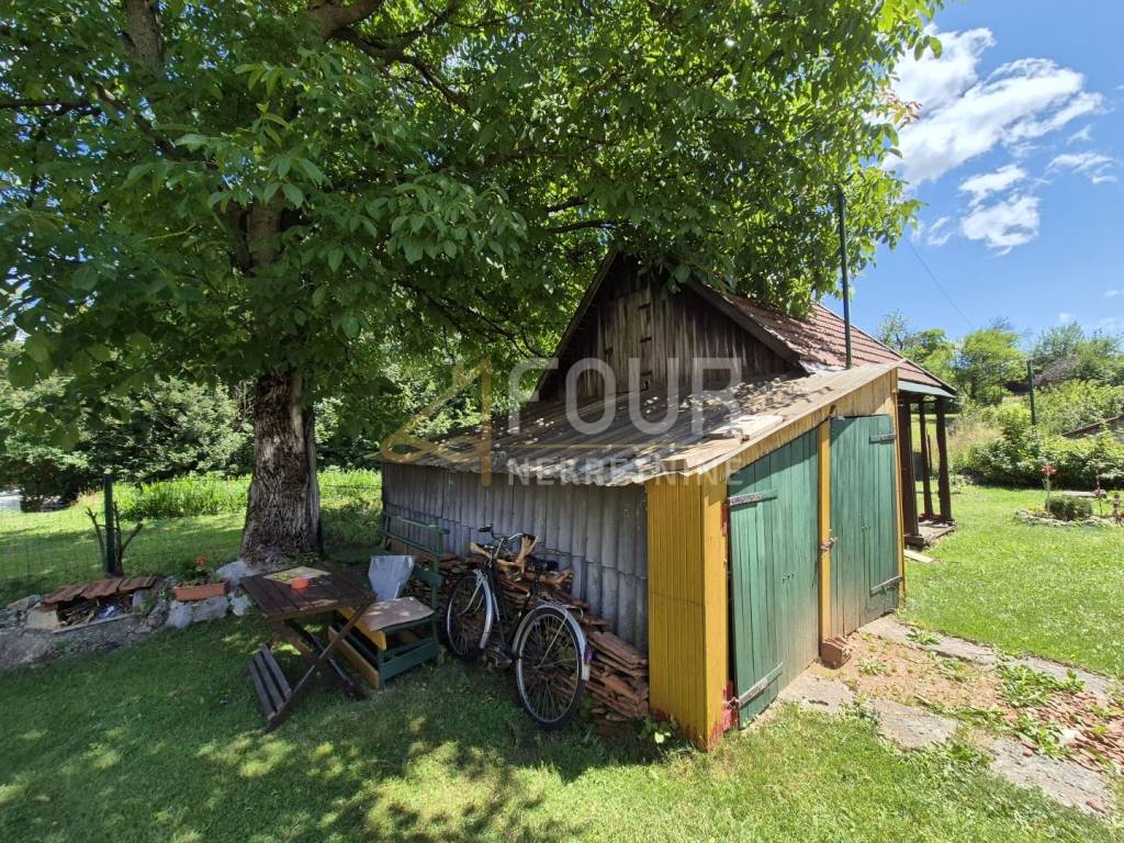 Na parceli površine 480m2 nalazi se glavna kuća, pomoćna gospodarska zgrada s priključcima vode i struje, drvarnica i 4 parkirna mjesta.
