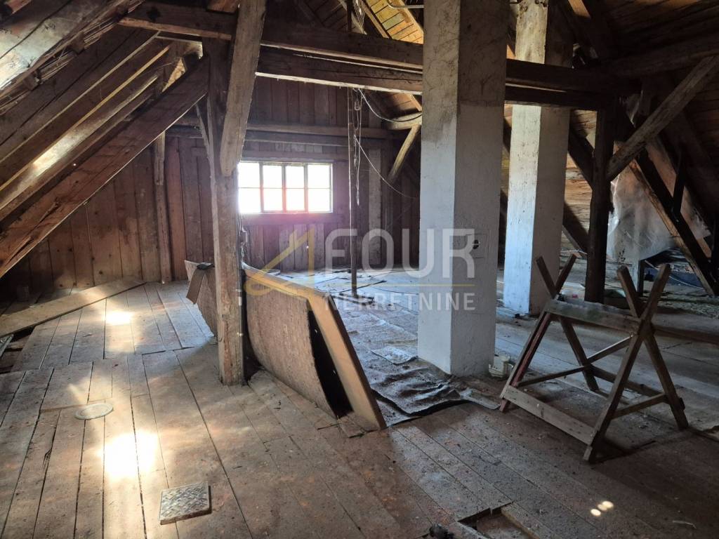 U prizemlju se nalaze kuhinja, spavaća soba, djelomično adaptirana kupaonica i prostor nekadašnje radionice.