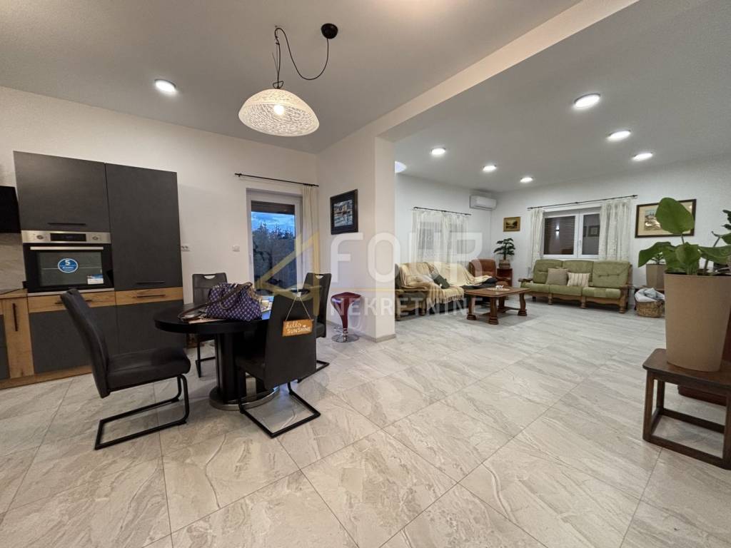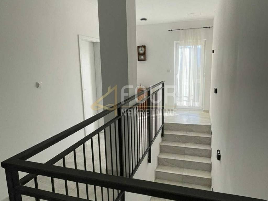 Na prvoj etaži nalazi se moderna kuhinja s kvalitetnim aparatima, blagovaonica, dnevni boravak, kupaonica, ostava i dva balkona koji pružaju obilje svjetla i osjećaj otvorenosti. Na gornjoj etaži smještene su tri spavaće sobe, dodatna kupaonica i vešeraj, uz još dva balkona koji upotpunjuju dojam prostranosti i komfora.