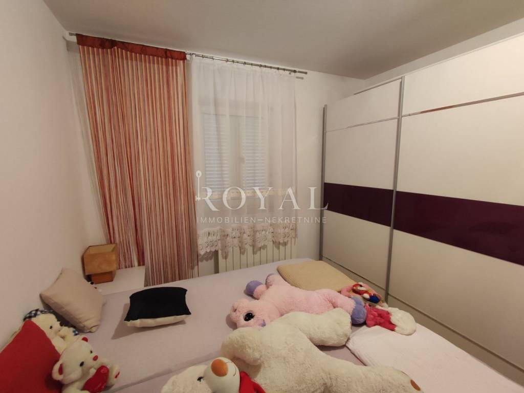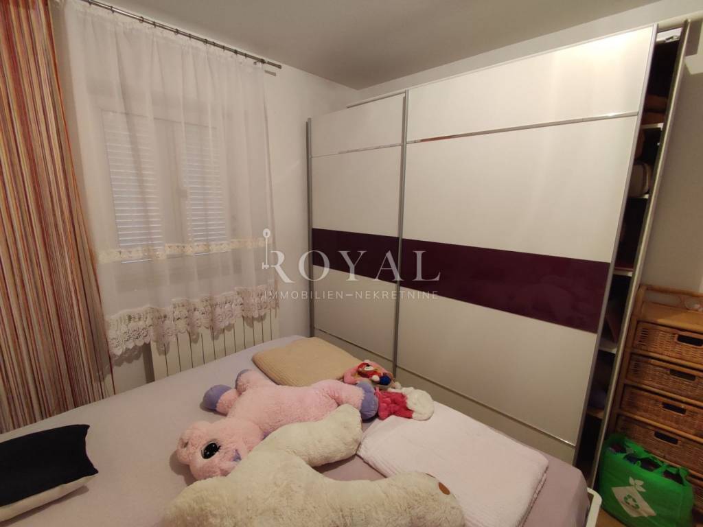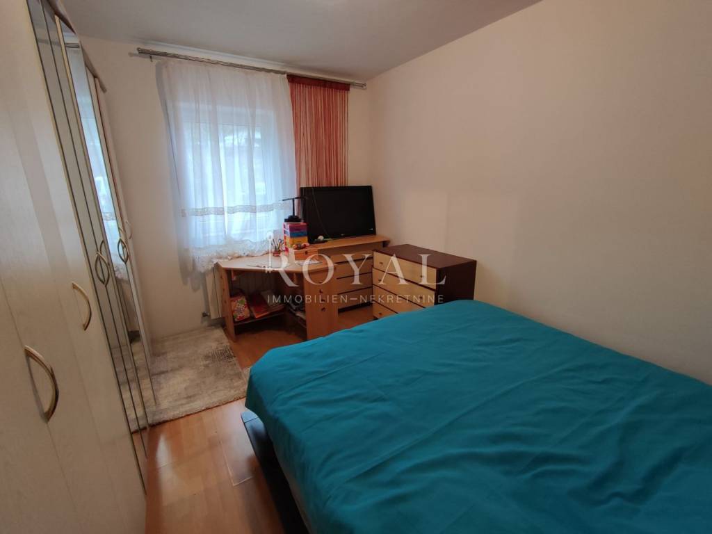 Predmetni stan se nalazi u visokom prizemlju površine 78 m2, a sastoji se od 2 spavaće sobe, dnevnog boravka, kuhinje i blagovaone, hodnika, kupaone i zasebnog wc-a.