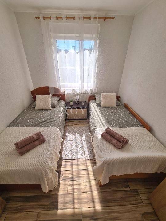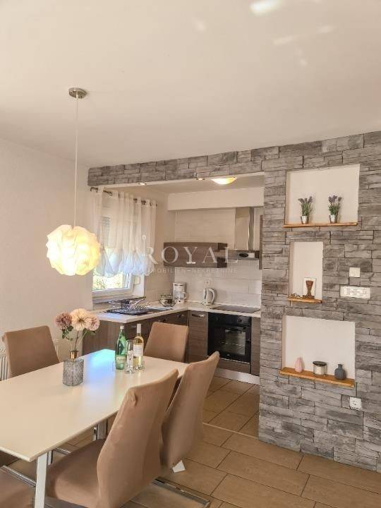 Posredujemo u najmu novouređenog stana na 1. katu stambene zgrade. Stan je potpuno opremljen. Sastoji se od kuhinje, dnevnog boravka, 3 spavaće sobe, kupaonice s tuš kabinom, kupaonice s kadom, hodnika i balkona. Parkiralište u dvorištu objekta. Grijanje etažno na plin.