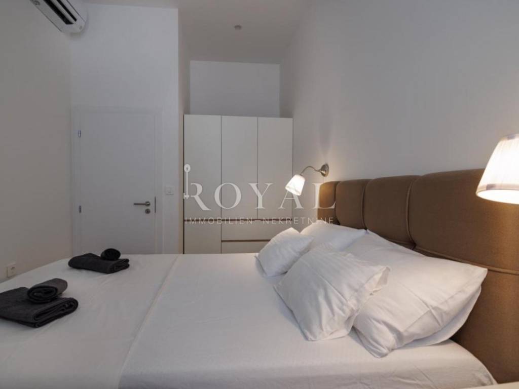 Iznajmljuje se potpuno novonamješten i moderno uređen dvosobni stan na 2. katu uredne stambene zgrade, smješten neposredno uz Korzo – u samom središtu grada.