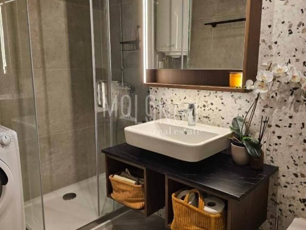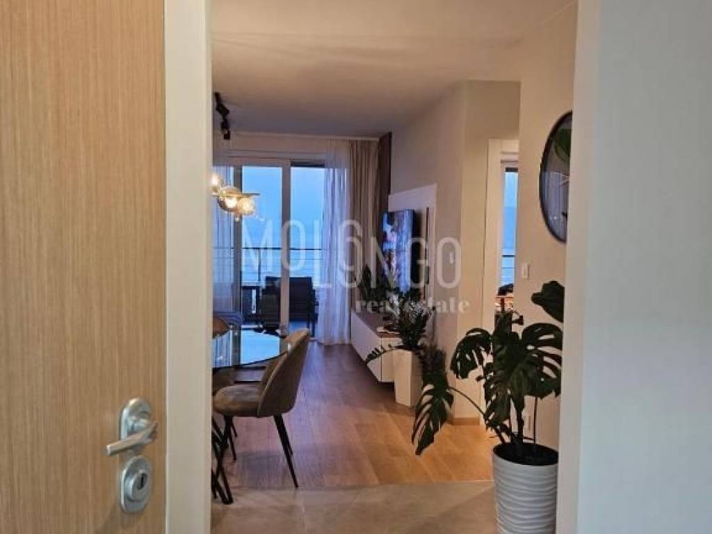 Iznajmljuje se stan u novogradnji. Nalazi se na mirnoj i tihoj lokaciji sa panoramskim pogledom na Kvarnerski zaljev. Stan je kompletno opremljen svim potrebnim kućanskim aparatima i namještajem. Sastoji se od 2 spavaće sobe, dnevnog boravka, kuhinje i blagovaone, hodnika, kupaone i prostranog balkona. U suterenu se nalazi garaža koja je liftom povezana sa stambenim dijelom zgrade. Stanu pripada i jedno vanjsko parkirno mjesto. Za sve ostale informacije kontaktirajte agenta.