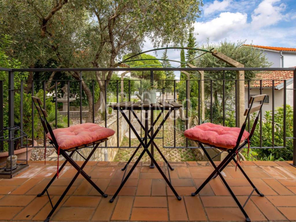 Okućnica je savršeno uređena: bazen, sunčalište, terasa, grill zona i vrtna kućica s ljetnom kuhinjom. Ispod terase, u suterenu, smještena je garaža, a na okućnici je osigurano više parkirnih mjesta.