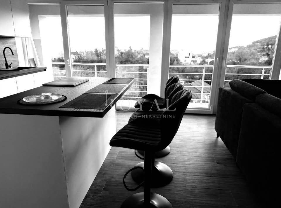Izdvajamo iz ponude dvosoban stan u Matuljima, na odličnoj lokaciji. Stan je u naravi 100m2, netto površina 63m2 i sastoji se od ulaznog hodnika, dnevnog boravka sa kuhinjom i blagovaonicom, dvije spavaće sobe i kupaone. Sa terase se pruža prekrasan pogled na more. Podno grijanje na cijeloj etaži. Stanu pripadaju 3 parkirna mjesta.