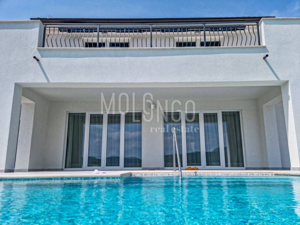 Unutrašnjost vile luksuzno je opremljena sa visokokvalitetnim namještajem po mjeri.