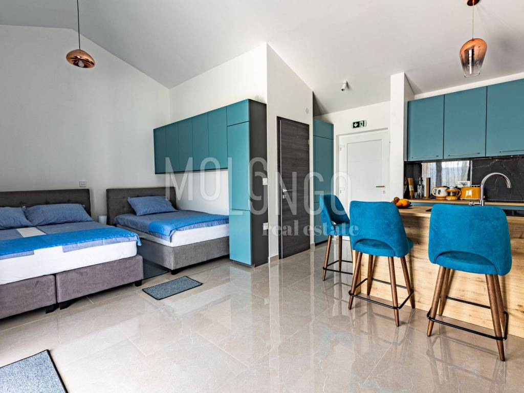 Uz vilu u prizemlju nadovezuju se tri apartmana u nizu od kojih dva po 33 m2 i jedan od 18 m2.