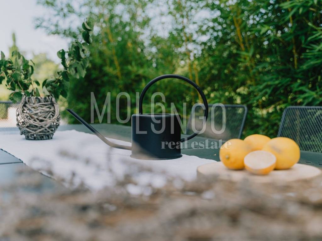 Vanjski dio kuće, odnosno okućnica koja je površine 630m2 čini pomno uređenu cjelinu, vrt sa sustavom navodnjavanja, bazen površine 38 m2, sunčalište sa ležaljkama, vanjski tuš, terasa te grill kutak za sve gurmane i ljubitelje dobrog roštilja. Također, u ograđenom dvorištu nalaze se tri privatna parking mjesta.