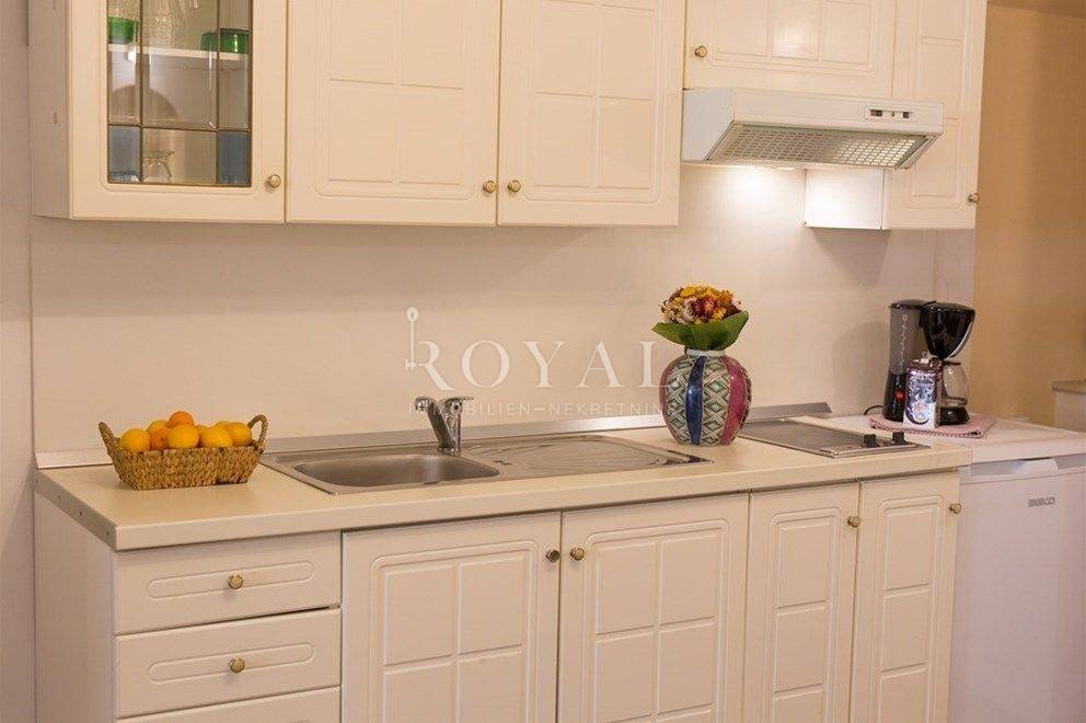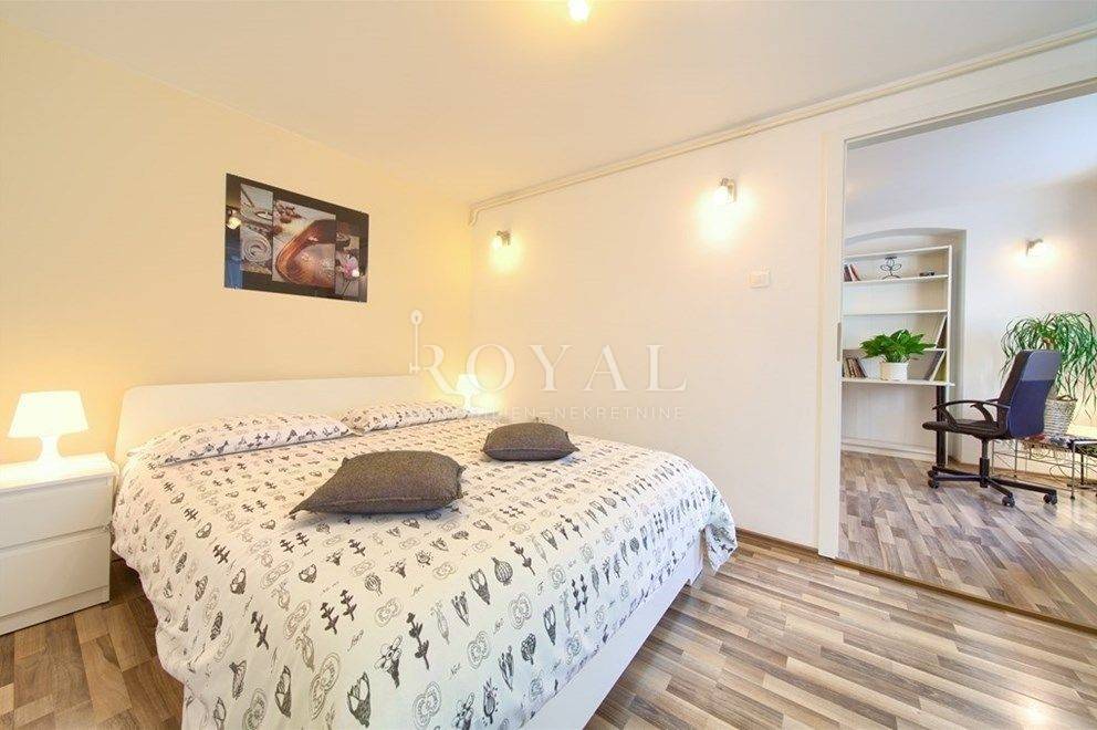 Stan se sastoji od spavaće sobe, dnevnog boravka s kuhinjom i blagovaonicom, kupaonice i hodnika. Opremljen je svim potrebnim namještajem i uređajima te spreman za useljenje.