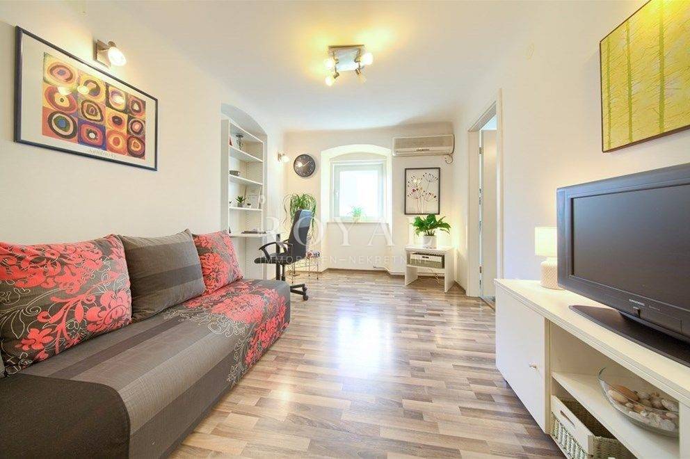 Iznajmljuje se kompletno novonamješten i uređen 1-sobni stan s dnevnim boravkom, površine 48 m², smješten na 3. katu stambene zgrade (bez lifta) u samom centru Rijeke.