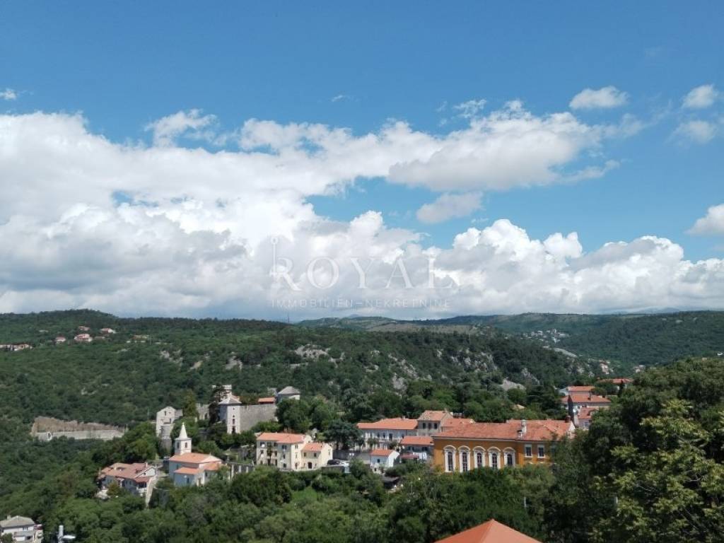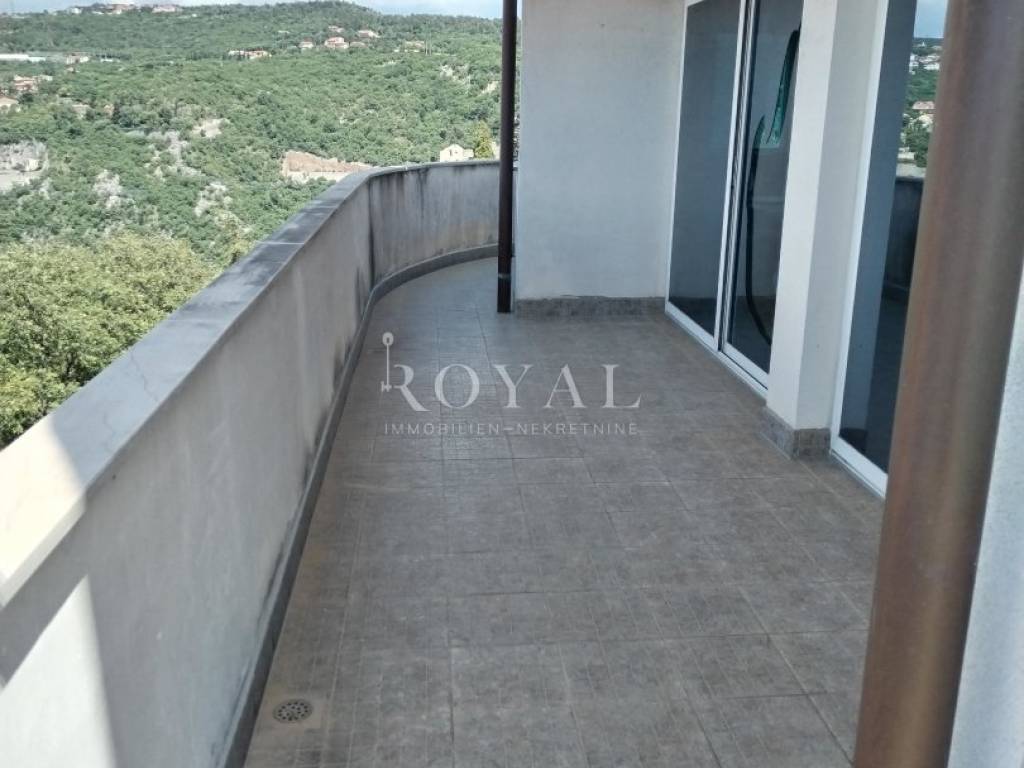 Trsat, dvoetažni stan prvi i drugi kat, peterosobni s dnevnim boravkom, terasa i balkon, predivan pogled na more. Stan se prodaje u ROH - BAU.
