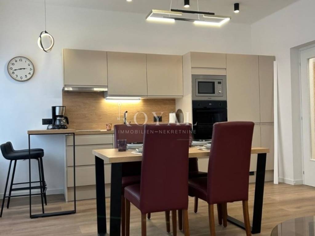 Iznajmljuje se luksuzan, novouređen i potpuno namješten trosobni stan smješten na 4. katu moderne zgrade s ukupno 5 katova, u samom centru grada Rijeke.