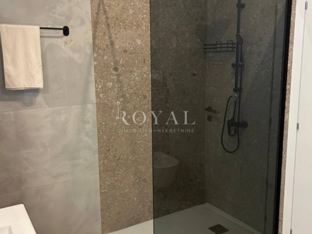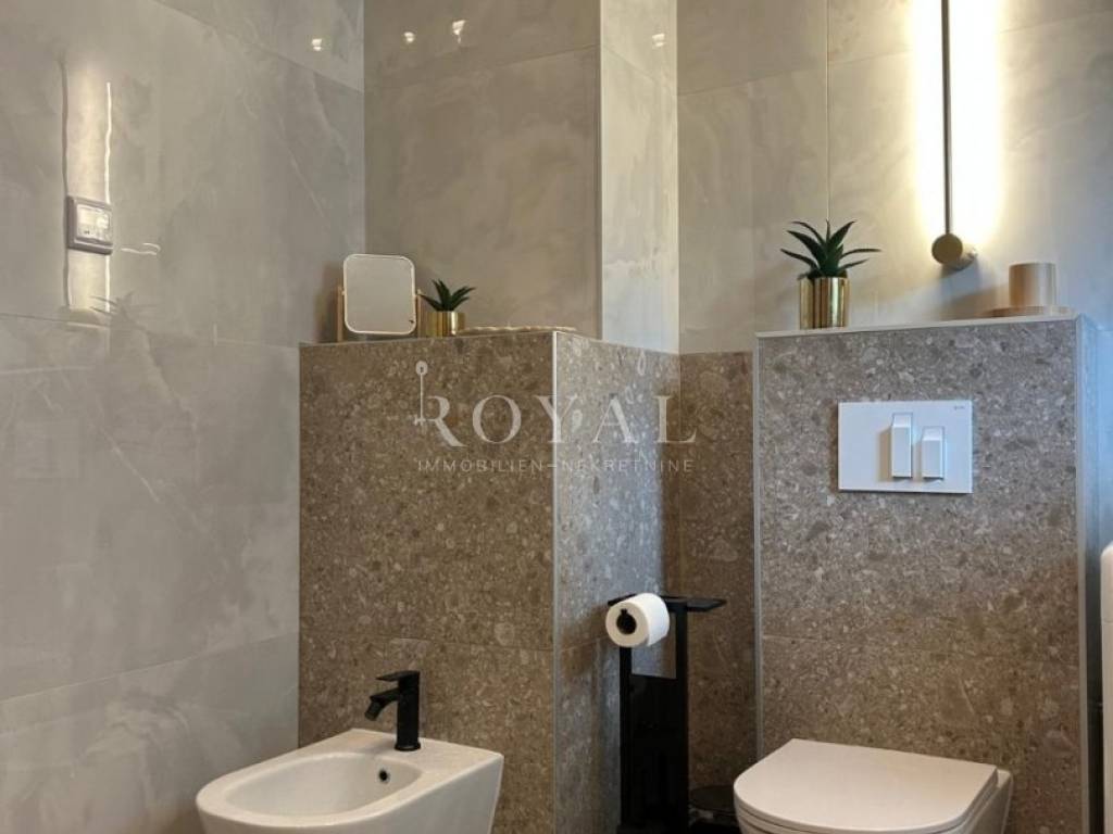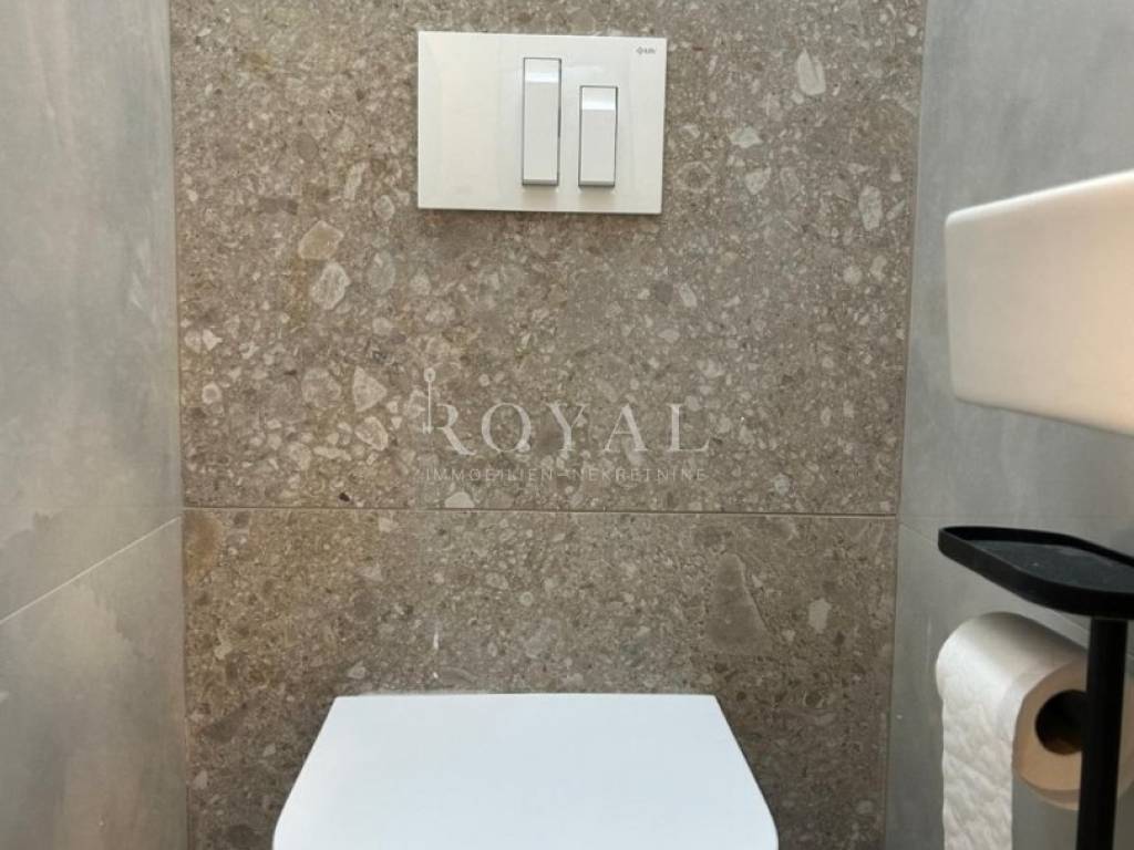 Stan se sastoji od tri spavaće sobe, a svaka je opremljena klima uređajem. Kupaonica je moderna i prostrana, s podnim grijanjem koje pruža dodatnu udobnost.