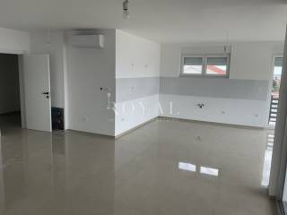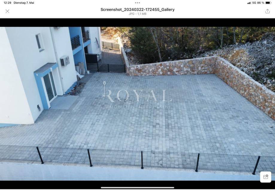 Smješten na drugom katu manje stambene zgrade, ovaj prostrani stan nudi iznimnu privatnost, vrhunsku kvalitetu gradnje i očaravajući panoramski pogled na more i otok Krk – sa svih balkona te posebno s vlastite krovne terase površine 140 m².
