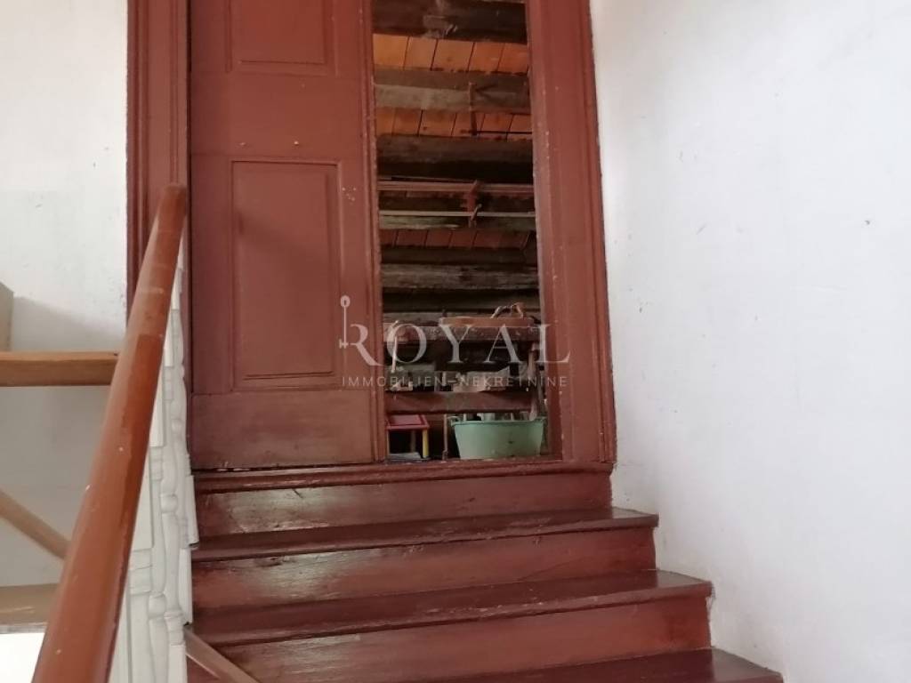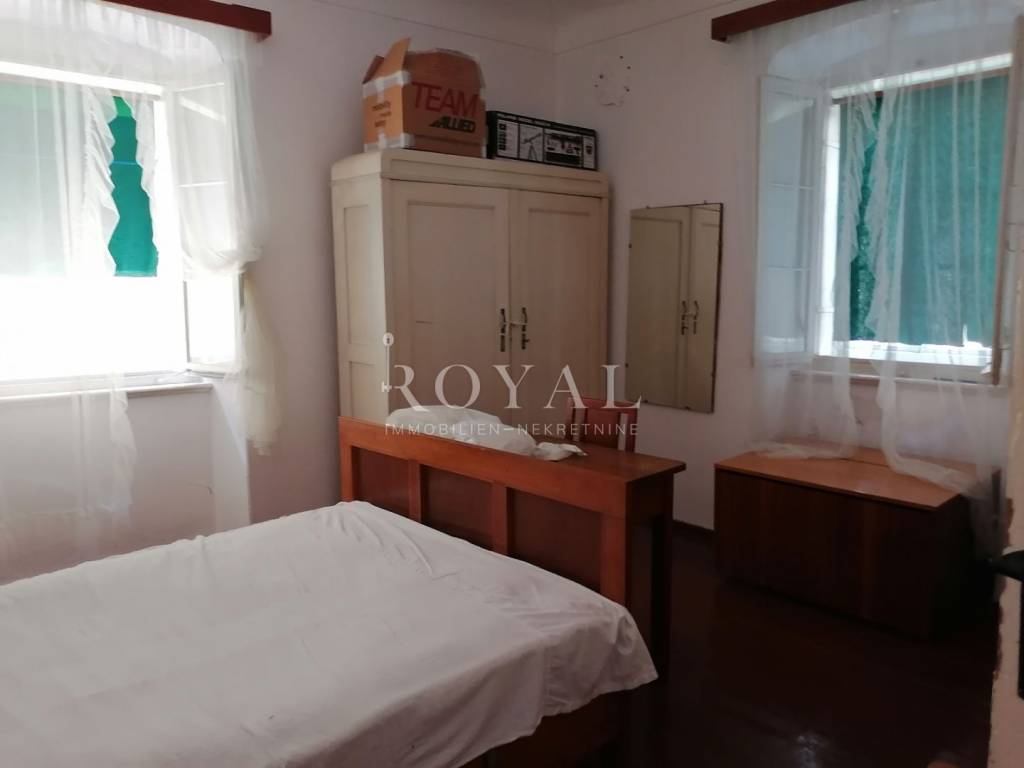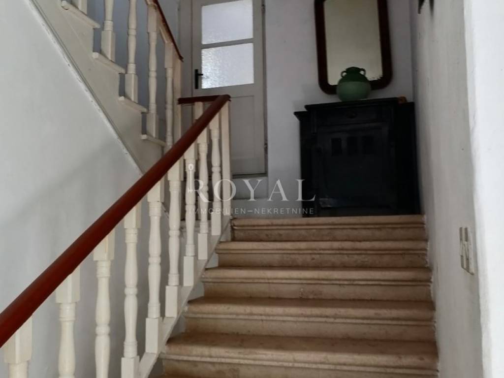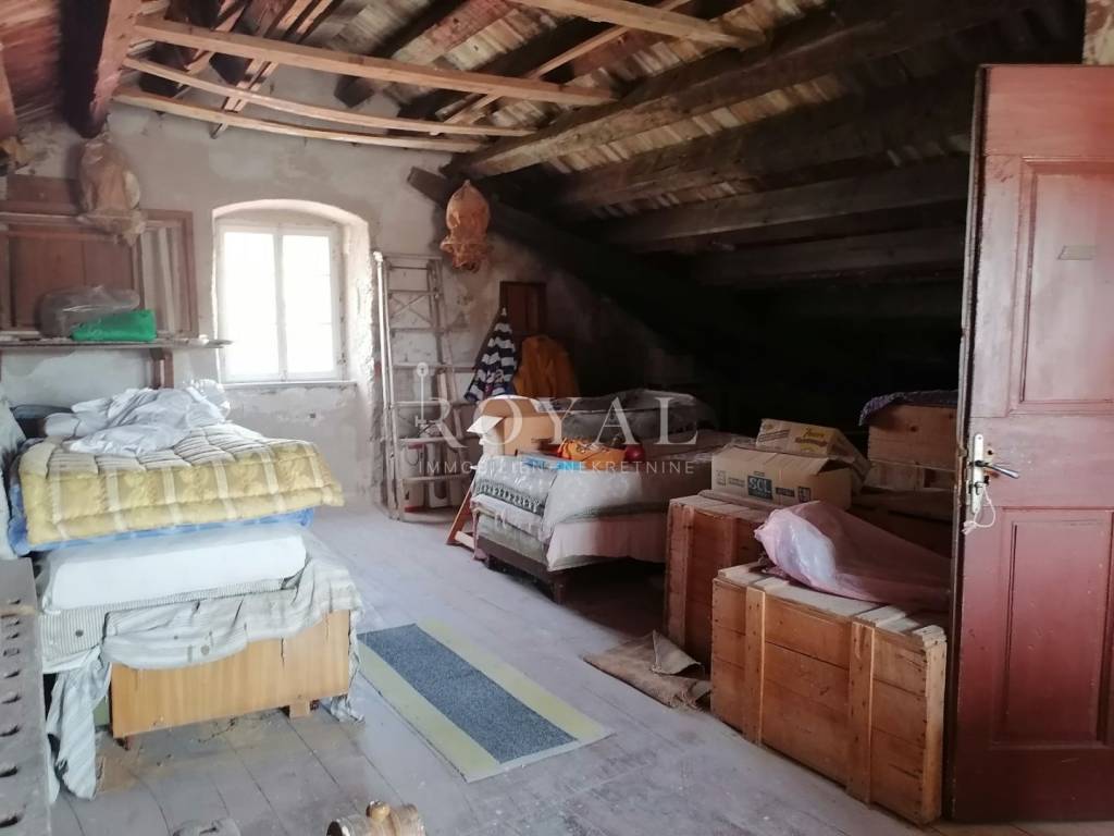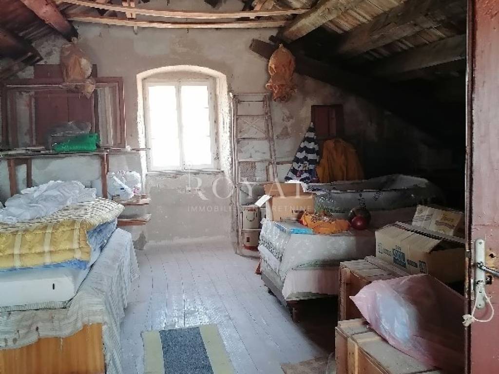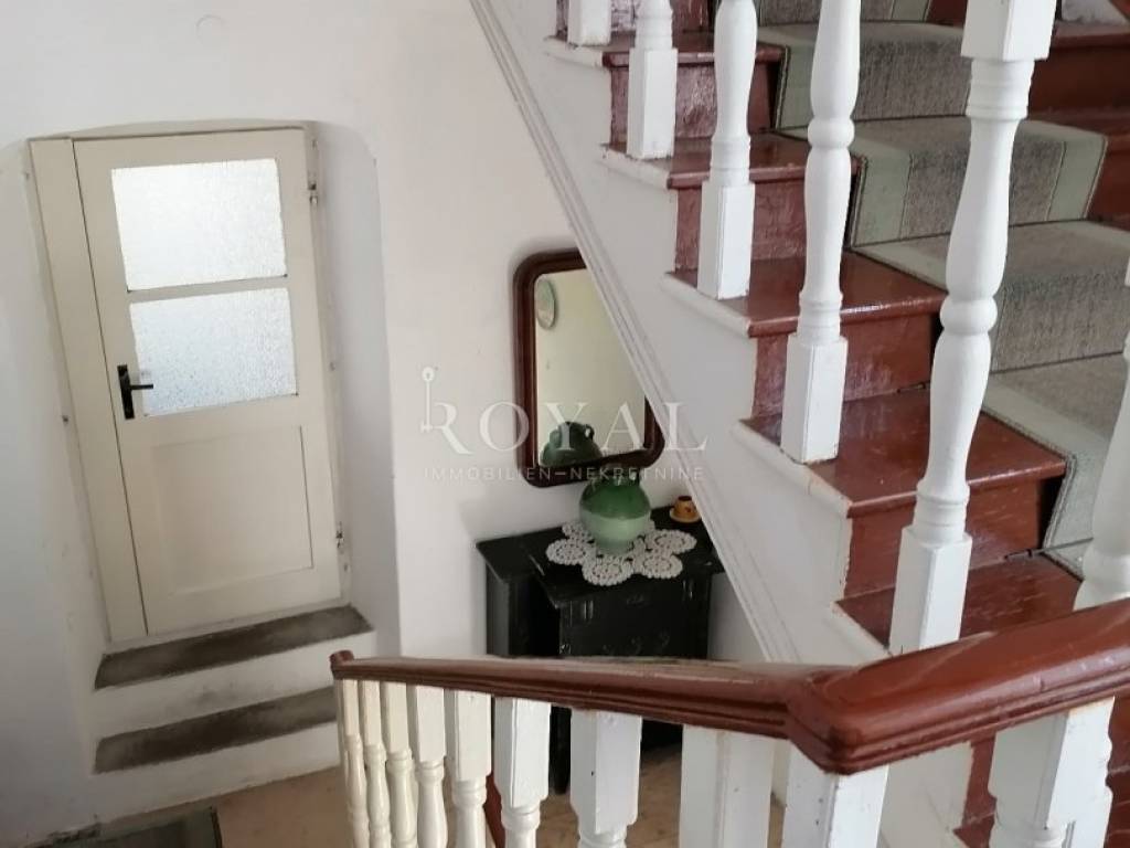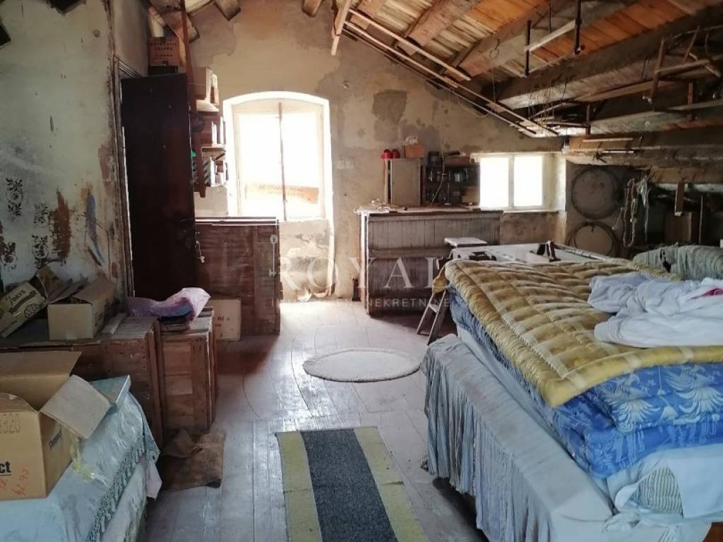 Nekretnina se sastoji od prizemlja u kojem se nalazi velika obiteljska kuhinja, spremište, spavaća soba, zimska kuhinja te bunar sa ukopanom cisternom (šternom) od cca 50 m2, koja se može savršeno urediti kao vinski podrum. Na međukatu se nalazi kupaonica sa wc-om, te staro raskošno kameno stepenište kojim se dolazi na drugi kat, gdje su smještene 3 spavaće sobe, kuhinja i garderobno spremište. Na drugom katu nalazi se terasa te 3 spavaće sobe. Na slijedećem međukatu nalazi se glavna kupaonica sa wc-om i prostrana terasa sa prekrasnim pogledom na lošinjsku luku. Iznad navedenog na trećem katu nalazi se visoko potkrovlje a uz glavnu kuću nalazi se pomoćna zgrada, trenutno u neuseljivom stanju, u kojoj se može urediti površinski prostor od 80 m2 (40 m2 prizemlja i 1. kata).