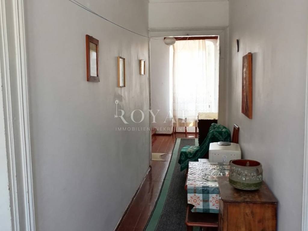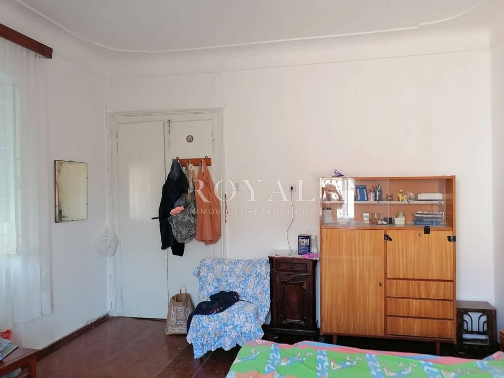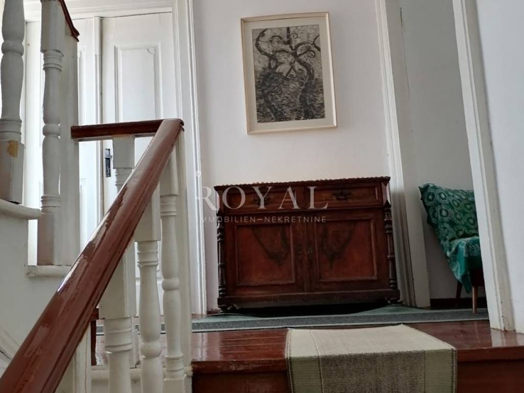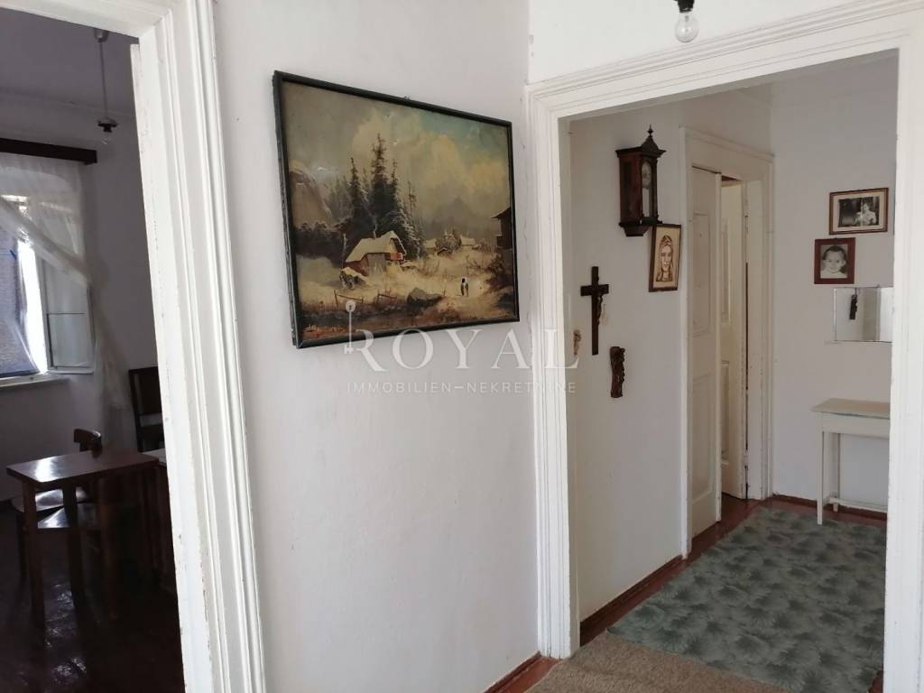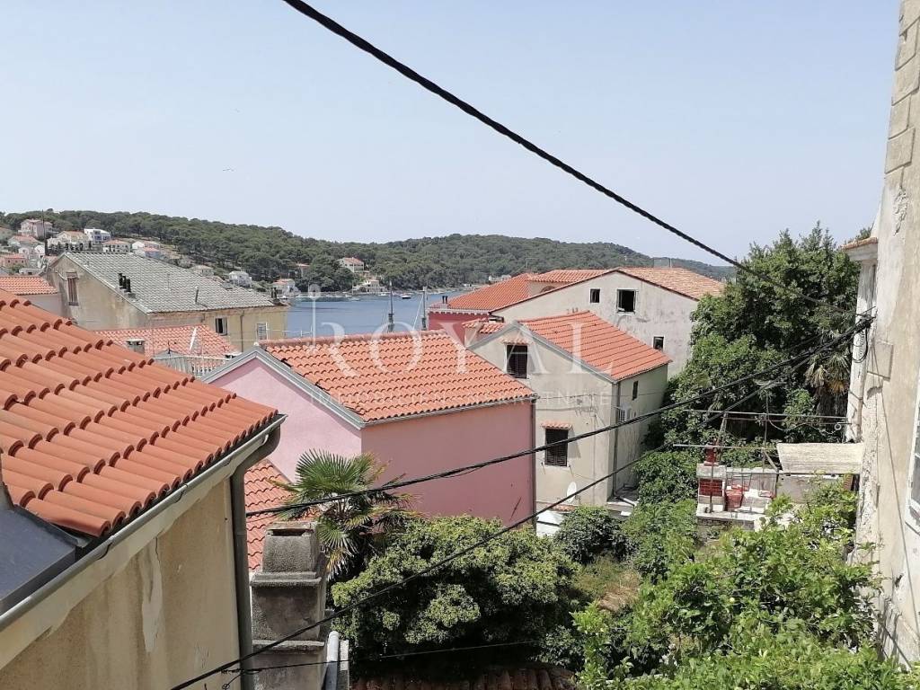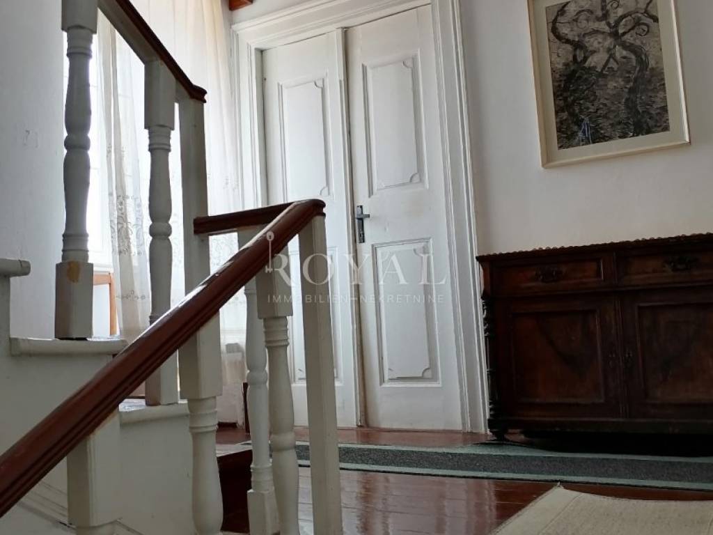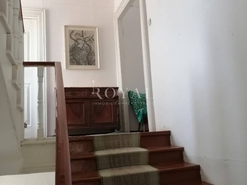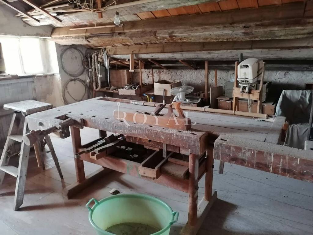 Nekretnina se sastoji od prizemlja u kojem se nalazi velika obiteljska kuhinja, spremište, spavaća soba, zimska kuhinja te bunar sa ukopanom cisternom (šternom) od cca 50 m2, koja se može savršeno urediti kao vinski podrum. Na međukatu se nalazi kupaonica sa wc-om, te staro raskošno kameno stepenište kojim se dolazi na drugi kat, gdje su smještene 3 spavaće sobe, kuhinja i garderobno spremište. Na drugom katu nalazi se terasa te 3 spavaće sobe. Na slijedećem međukatu nalazi se glavna kupaonica sa wc-om i prostrana terasa sa prekrasnim pogledom na lošinjsku luku. Iznad navedenog na trećem katu nalazi se visoko potkrovlje a uz glavnu kuću nalazi se pomoćna zgrada, trenutno u neuseljivom stanju, u kojoj se može urediti površinski prostor od 80 m2 (40 m2 prizemlja i 1. kata).