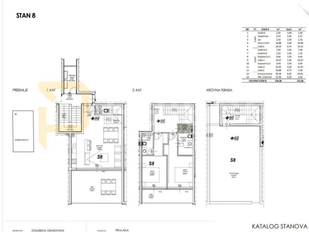 S8 - 2. kat, dvosoban stan s krovnom terasom, 131,06 m2 – 458.710,00 €