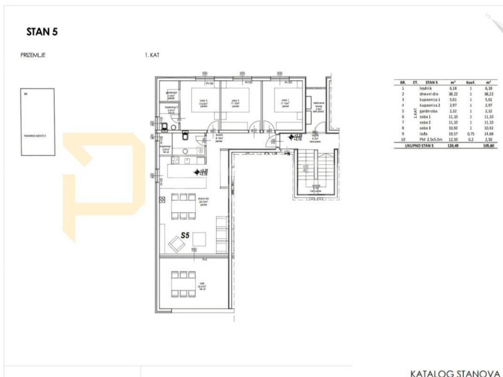 S5 - 1. kat, trosoban stan, 105,60 m2 – 369.600,00 €