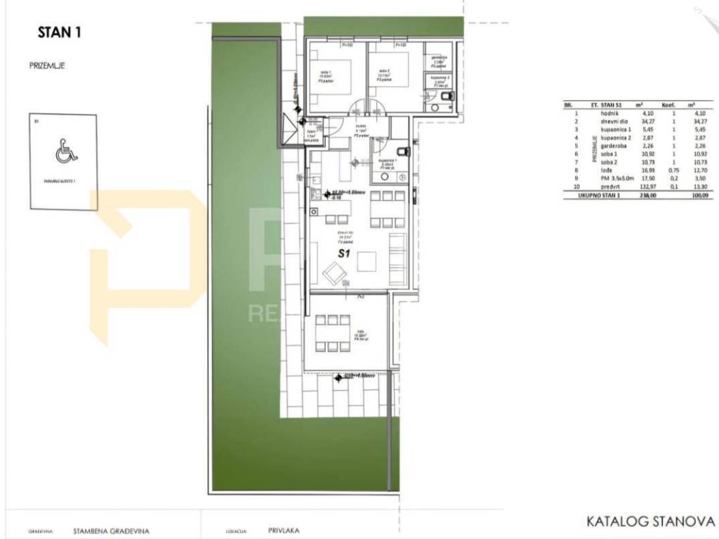 S1 - prizemlje, dvosoban stan 100,09 m2 – 350.315,00 €