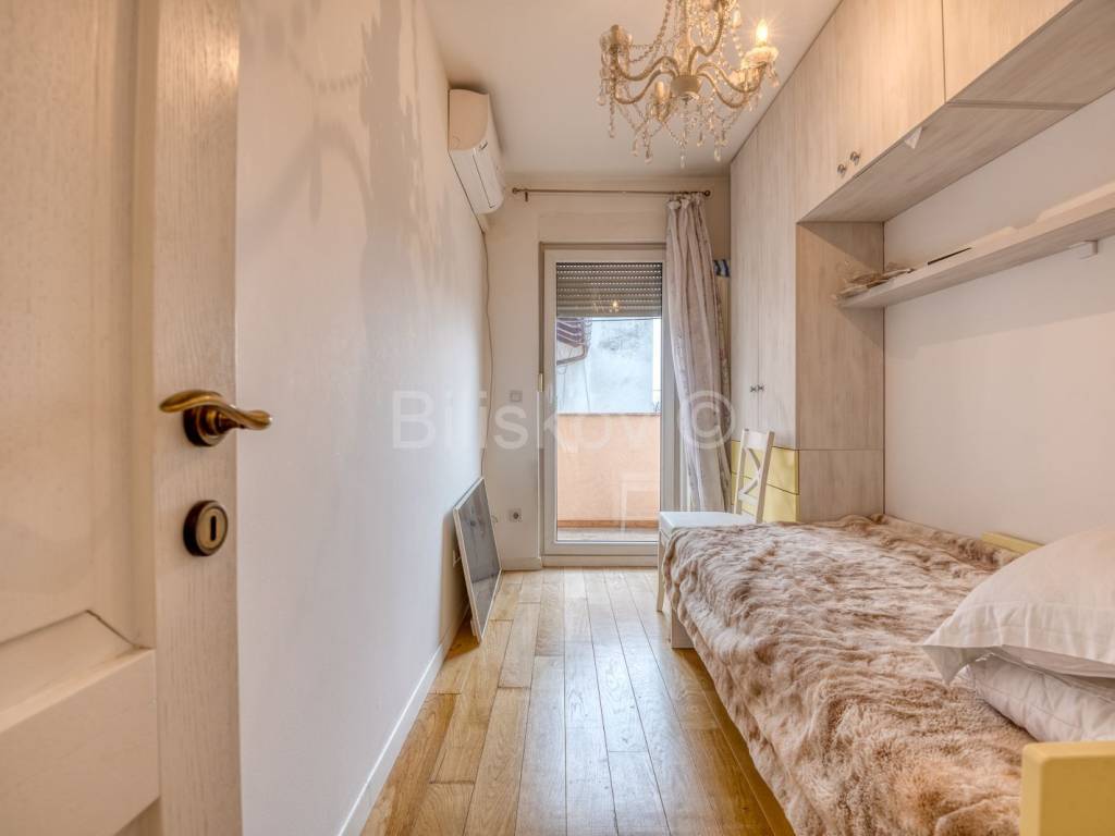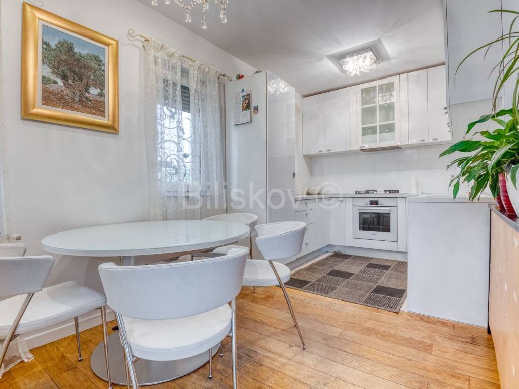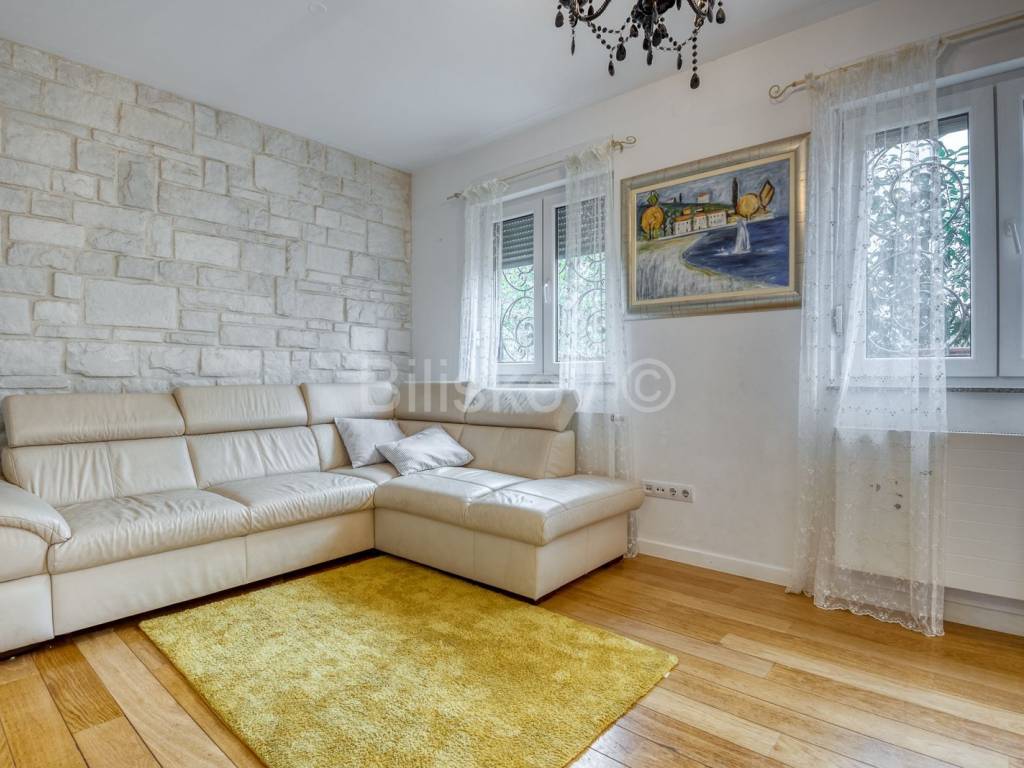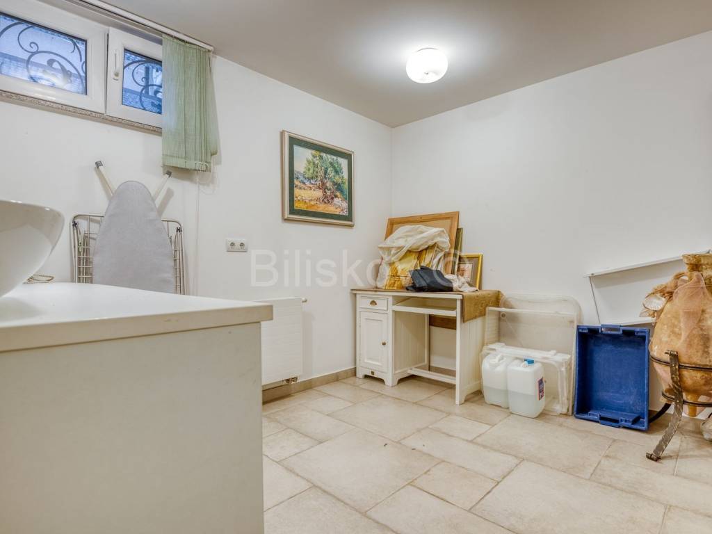 U prizemlju se nalazi veliki dnevni boravak, blagavaona , kuhinja i toalet. Iz dnevnoga boravka direktan je pristup dvorištu i velikom roštilju. Na katu se nalaze tri spavaće sobe, kupaona i terasa.