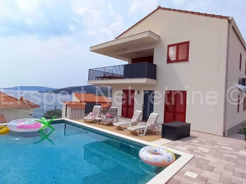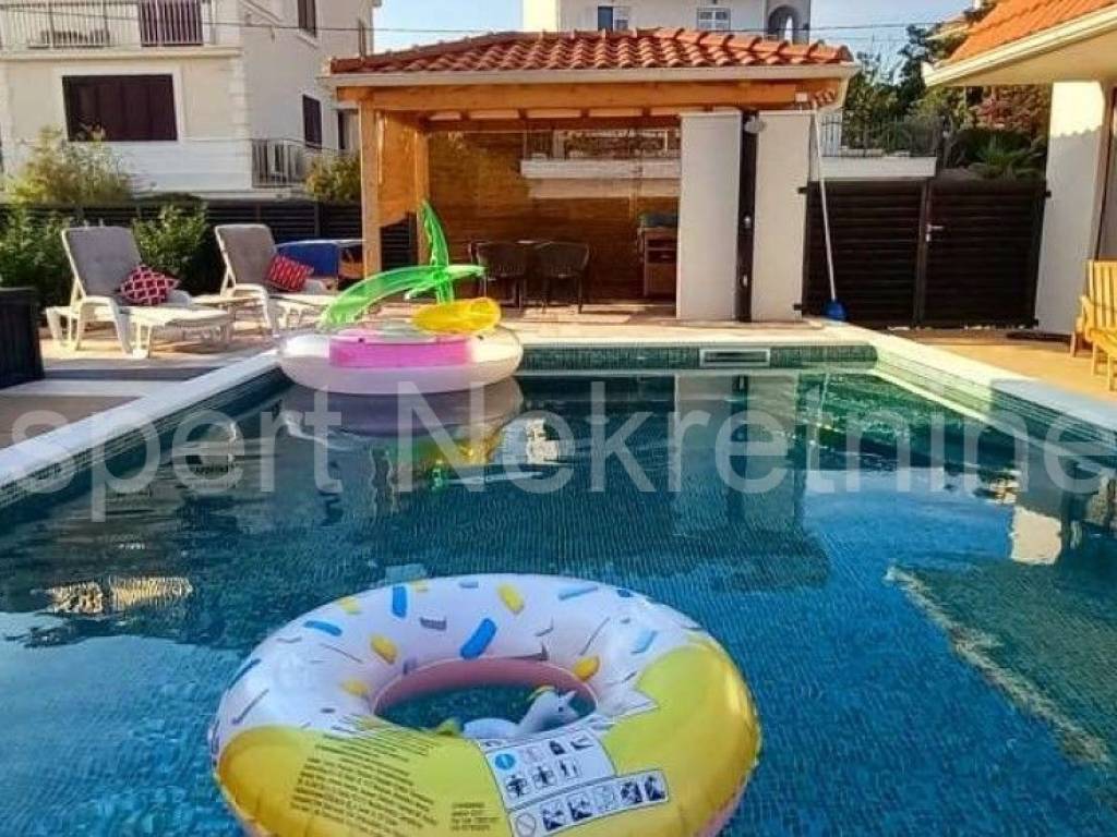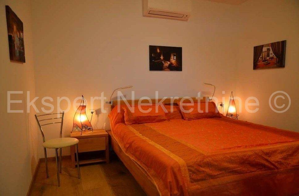 Seget Vranjica ,komforan dvosoban stan 100 m2(78 m2 stan+38 m2 balkona) u zgradi samo samo 3 stana,novije gradnje(2020.g) sa pogledom na more i otoke od kojeg je stan udaljen samo 60 metara. Stan se nalazi na prvom katu te ima dvije velike spavaće sobe,dva kupatila,kuhinju sa blagovaonicom i velikim dnevnim boravkom iz kojeg se izlazi na veliki balkon (37 m2) sa kojeg se pruža lijep pogled na more i otoke.Stan je kompletno namješten i takav se i prodaje.Pripada mu jedno vanjsko parking mjesto.Stan ima pravo korištenja bazena te prostora za skladište u velikoj garaži. Odmah useljiv.Vlasništvo uredno.Moguća kupnja i na kredit.