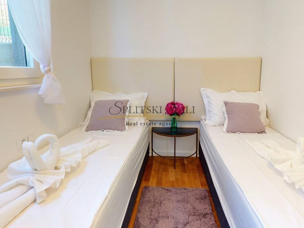 Posredujemo u prodaji dvosobnog stana u zgradi Cesarica zatvorene površine 36,67m2 te otvorenog dijela ukupne površine 23,33m2. Stan se nalazi na etaži prizemlja a sastoji se od kuhinje s blagovaonicom, dnevne sobe, kupatila, dvije spavace sobe, poplocanog dvorišta te vrta. Stanu pripada jedno parking mjesto u garaži. Vlasništvo 1/1, mogućnost kupnje putem kredita. Razgled je moguć iskljucivo uz prethodno potpisan ugovor o posredovanju. Za razgled i više informacija kontaktirajte nas na broj 099 1600 441 Antonija