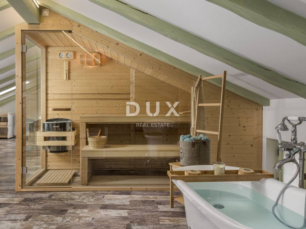 Nekretnina je jako dobro orijentirana sa puno sunčeve svjetlosti. Namještaj koji se nalazi u kući je vrhunske talijanske kvalitete (SMEG kuhinja), a oprema uključuje DAIKIN fencoilere u svakoj prostoriji. Dodatno za ugođaj postoji kamin na drva. Mir, zelenilo i pogled zagarantiran.