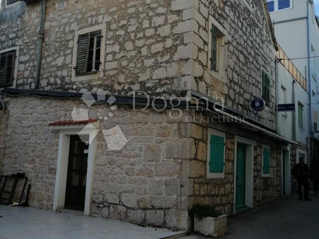 U centru Vodica nadomak mora, prodaje se poslovni prostor u kamenoj kući, na tri etaže, svaka površine od 113 m2 i prizemne terase od 100 m2.