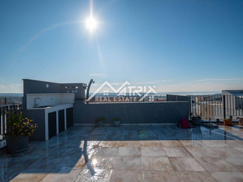 Na krovnoj terasi nalazi se ljetna kuhinja, a prostor je dovoljno velik za jacuzzi i vanjski tuš, što dodatno podiže kvalitetu boravka. S terase se pruža otvoren, panoramski pogled na more.