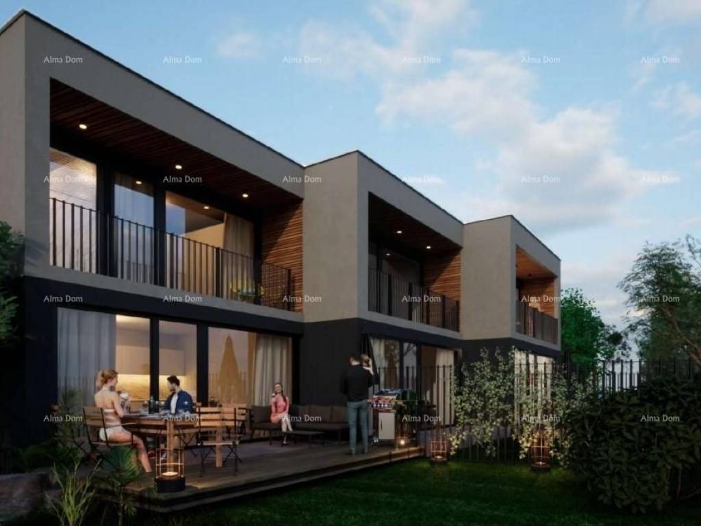 U prodaji je luksuzan stan u izgradnji na Mukalbi, Medulin, blizu mora. U projektu je samostojeća stambena zgrada sa 3 stambene jedinice, a u naravi su to 3 kuće u nizu. Svaka kuća/stan se sastoji od prizemlja s terasom i pripadajućem vrtom i kata, s kojeg se pruža pogled na more.Kuća u nizu ili drugim riječima dvokatan stan ima ukupnu stambenu površinu od 108 m2, 51 m2 u prizemlju i 57 m2 na katu, i njemu pripada 2 parkirnih mjesta.NETTO POVRŠINA STANAPRIZEMLJE:1.1.NATKRIVENI ULAZ6.30*0.50=3.151.2.OTVORENO SPREMIŠTE3.33*0.75=2.501.3.PREDPROSTOR6.911.4.WC2.971.5.SPREMIŠTE2.601.6.DN. BORAVAK, KUH., BLAG. 32.93UKUPNO PRIZEMLJE 51.06m21.KAT STANA2.1. STUBIŠTE8.532.2. SPAVAĆA SOBA10.182.3. SPAVAĆA SOBA10.152.4. KUPAONICA3.832.5. SPAVAĆA SOBA13.972.6. KUPAONICA4.822.7. LOGGIA7.90*0.75=5.93UKUPNO 1. KAT 57.41m2Početak gradnji u novembru 2024. godine, a završetak planira se na ljeto 2025.Plačanje je po fazama gradnji.Za dodatne informacije, molimo kontaktirajte:Azra+385 91 611 5706+385 98 420 885azra@almadominvest.com