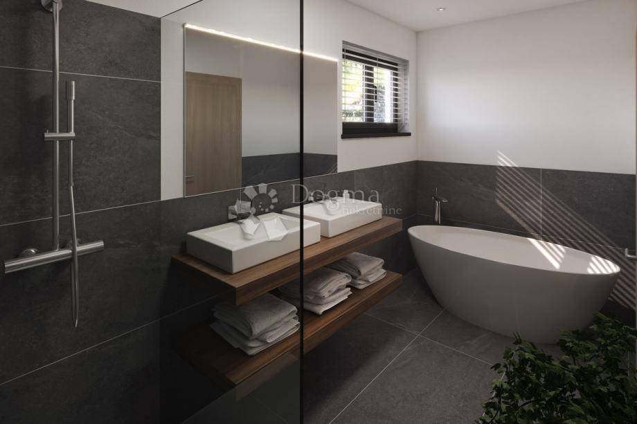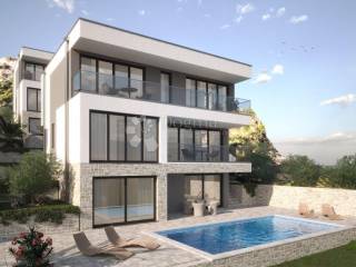 Ova nekretnina nudi izuzetan spoj luksuza, prirodne ljepote i atraktivne lokacije idealna za obiteljski dom ili kao vrhunska investicija u turistički najam. Projektirana kako bi pružila maksimalnu udobnost od prostranih, svjetlom ispunjenih interijera do luksuzne wellness zone u prizemlju. Velike staklene stijene omogućuju nesmetan pogled na more, dok vanjski prostor s grijanim bazenom i sunčalištem pruža savršen ambijent za opuštanje.