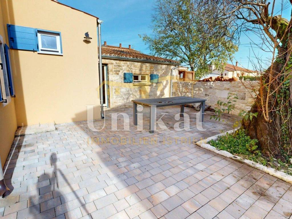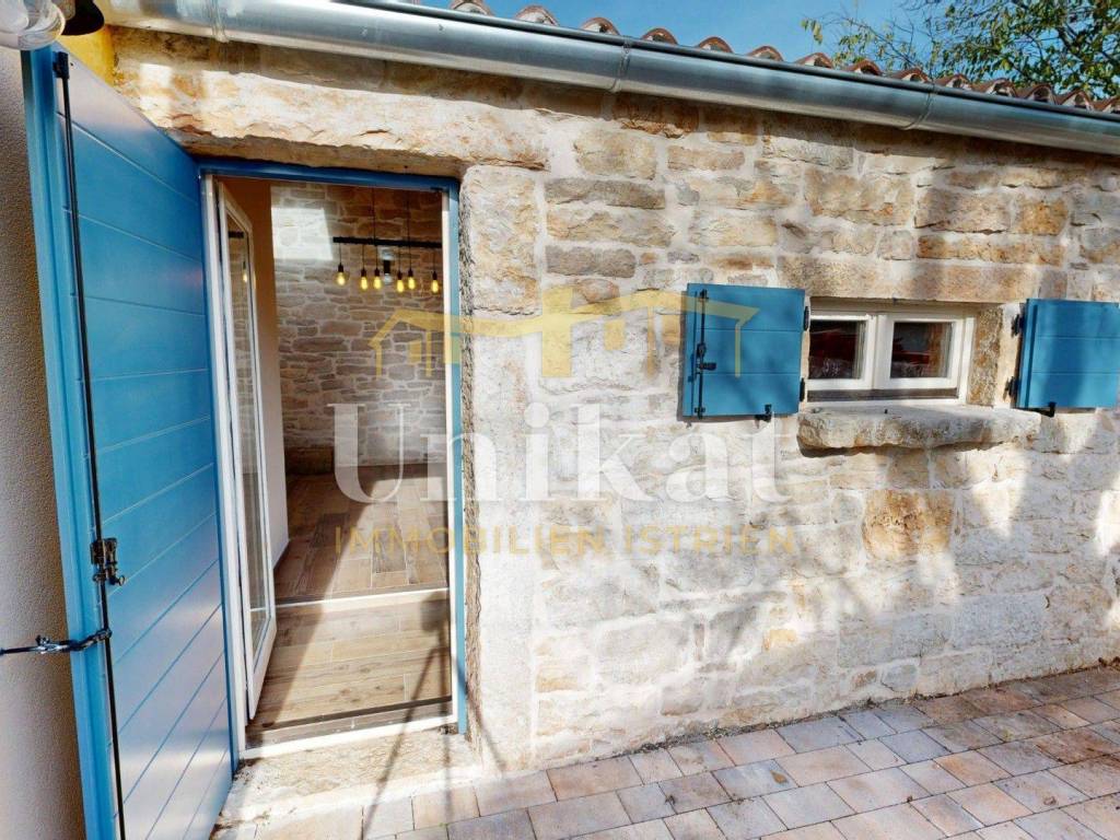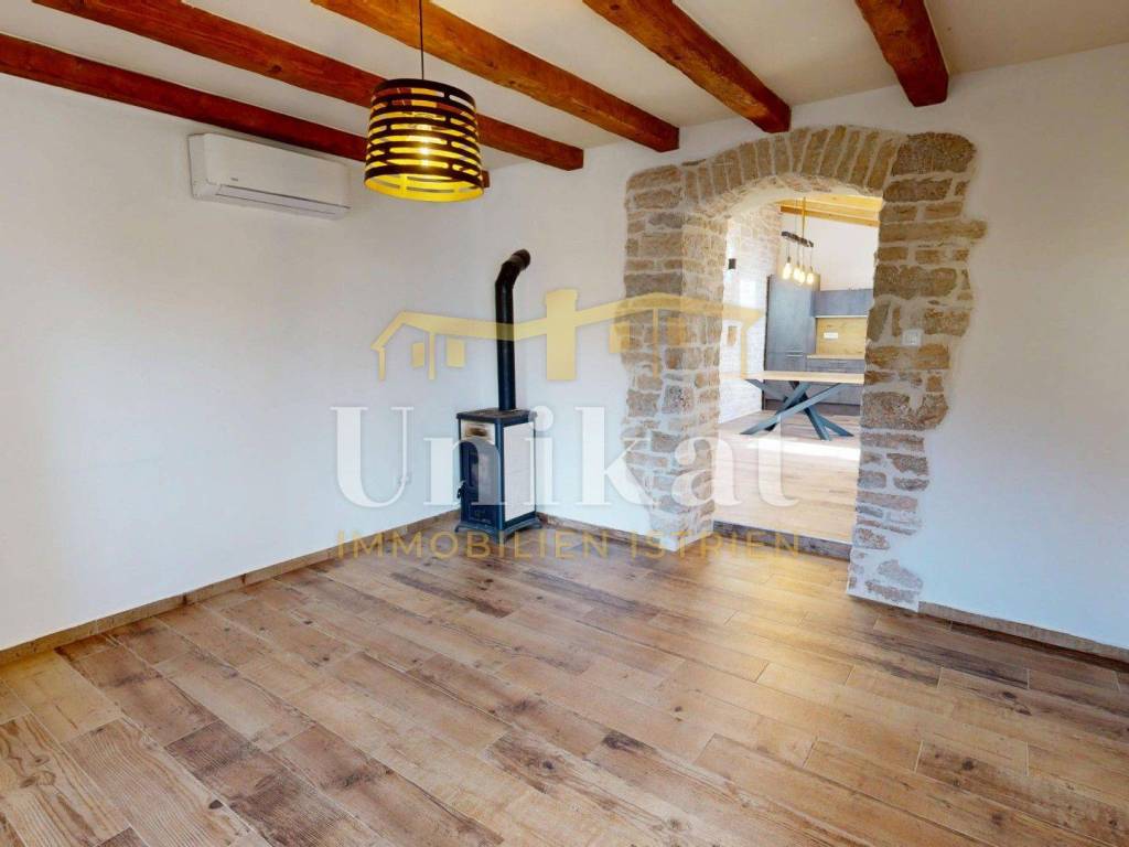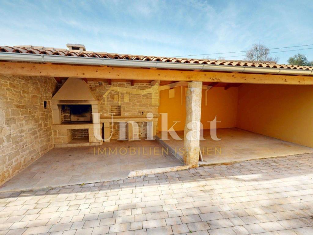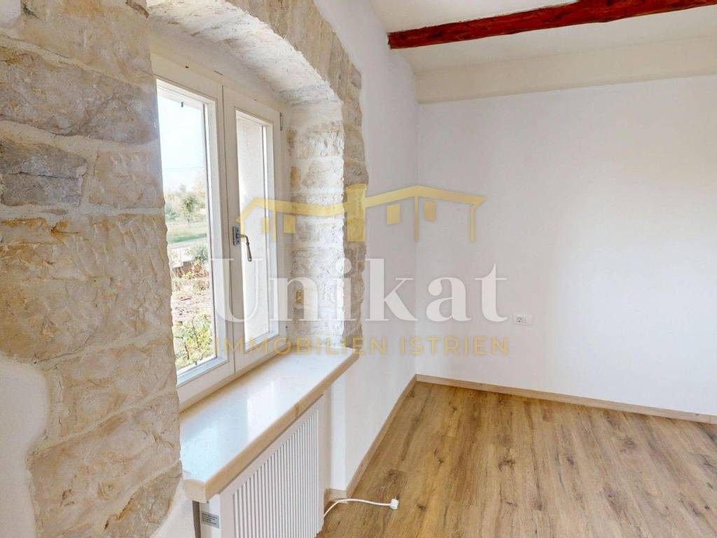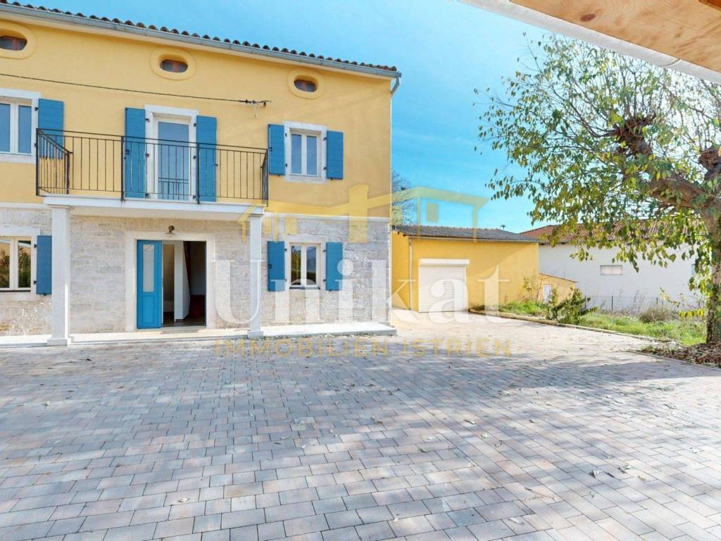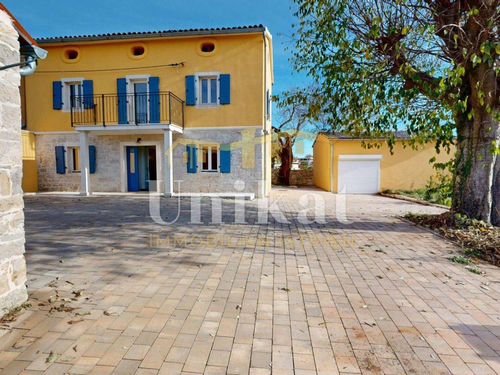 Ova dvojna kuća nalazi se u mjestu u okolici Poreča, udaljenost do mora je 7 km. Susjedstvo je uredno i sastoji se od obiteljskih kuća i privatnih kuća za odmor, ima puno zelenila.