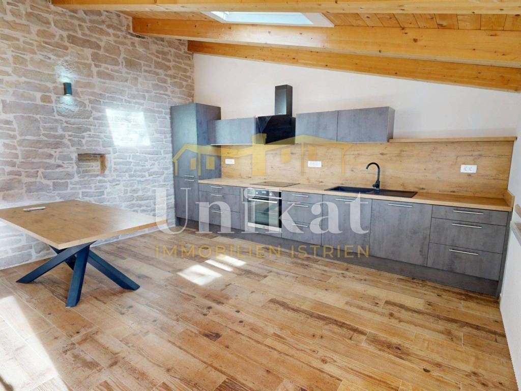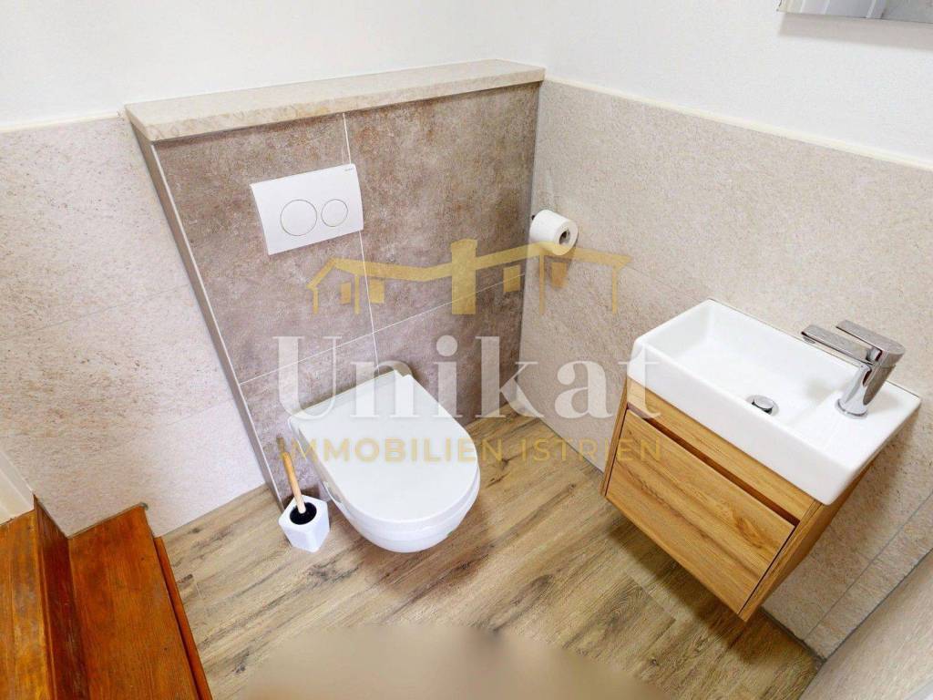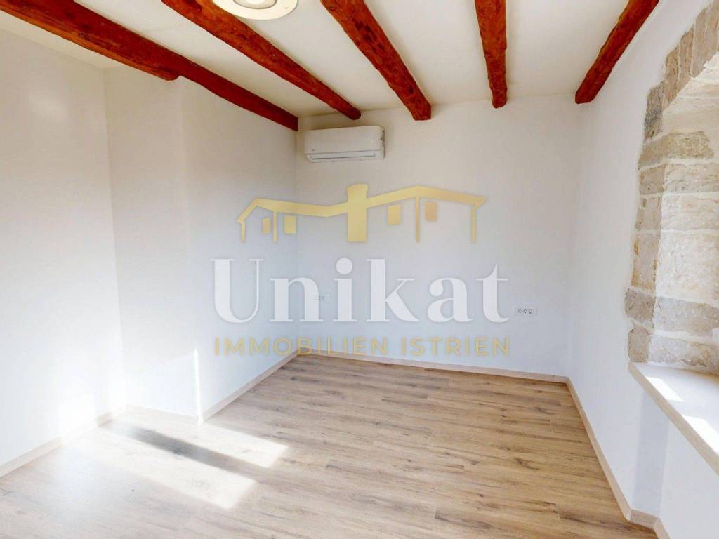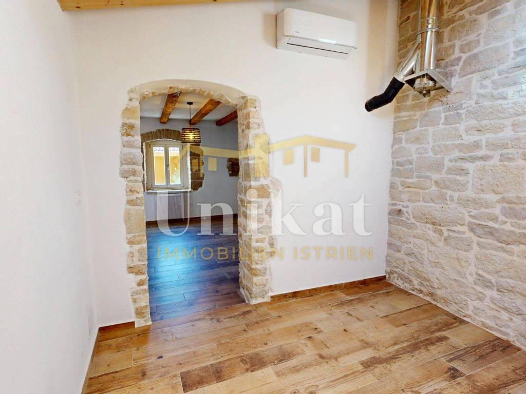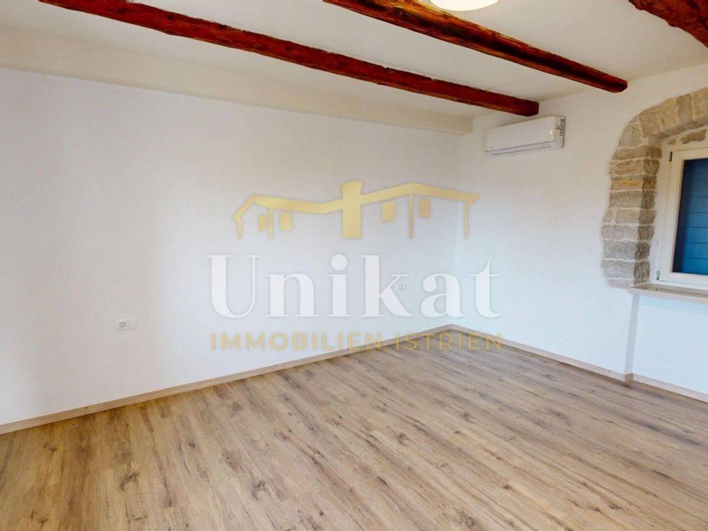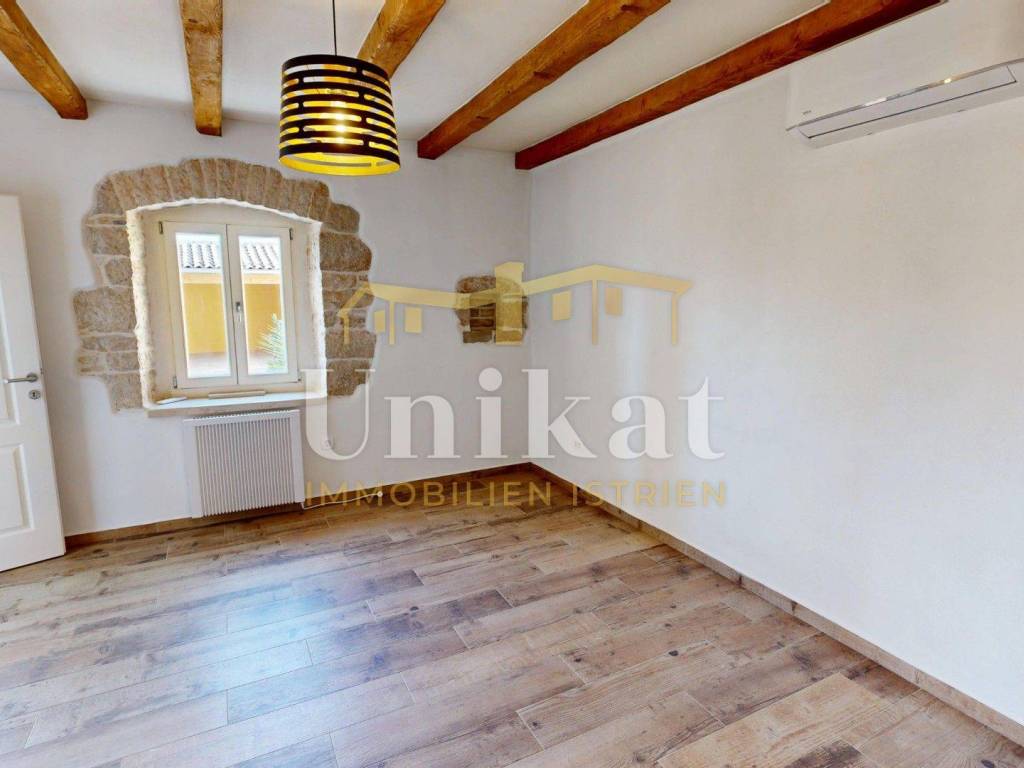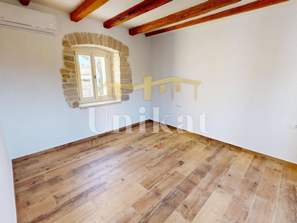 Ova dvojna kuća nalazi se u mjestu u okolici Poreča, udaljenost do mora je 7 km. Susjedstvo je uredno i sastoji se od obiteljskih kuća i privatnih kuća za odmor, ima puno zelenila.