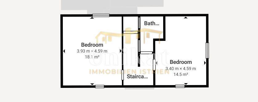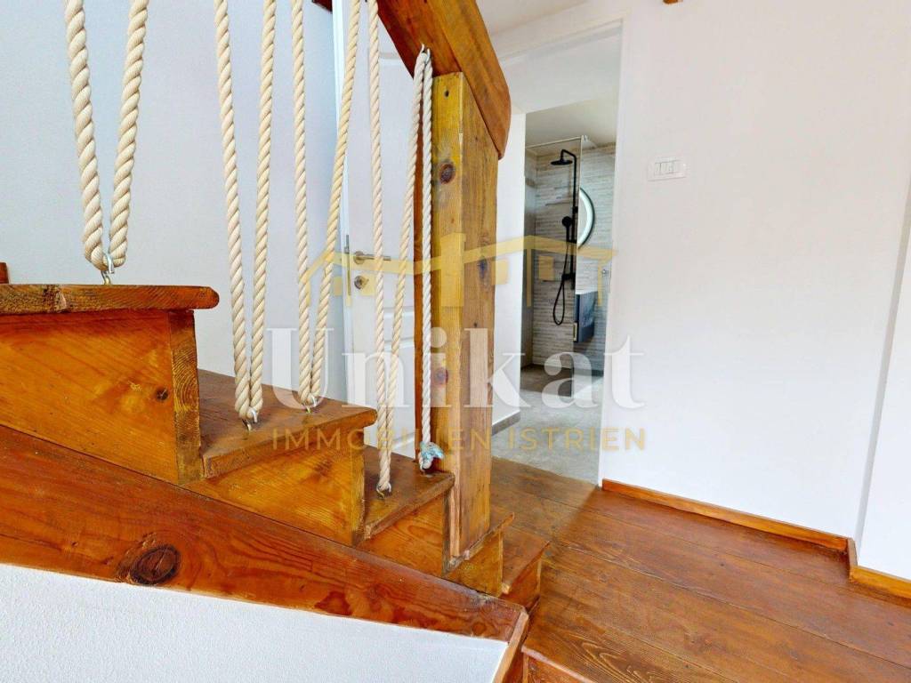 Na katu se nalaze dvije spavaće sobe, WC, te balkon koji ima pristup iz hodnika. Iz WC-a postoji prolaz do potkrovlja se može koristiti kao dodatni skladišni prostor, budući da je prenisko za stambene svrhe.