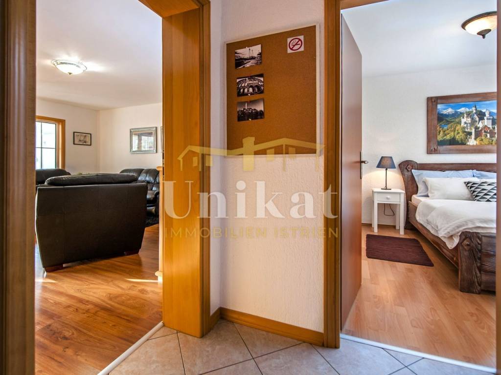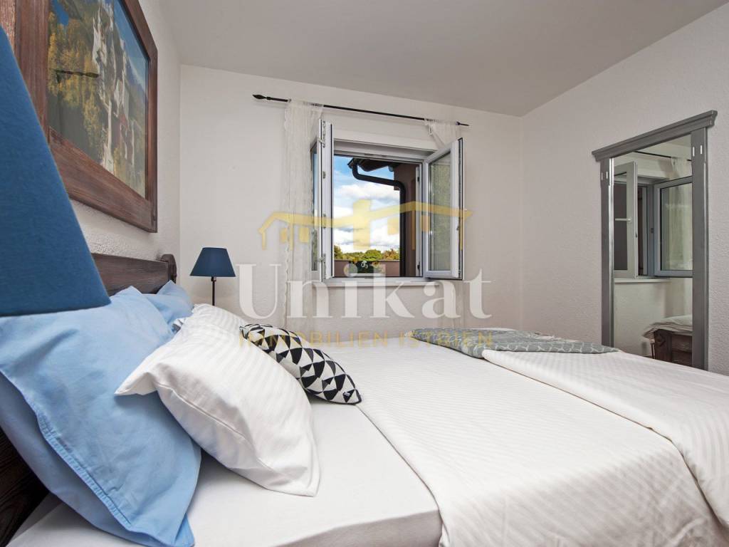 Kuća se nalazi u vrlo malom i mirnom mjestu na udaljenosti od 12 km od mora i Poreča. U susjedstvu se nalaze obiteljske kuće i kuće za odmor. Mjesto je okruženo prirodom.