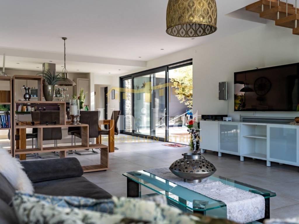 Iz svih dijelova prizemlja postoji direktan pristup unutarnjoj terasi kuće, u smislu atrija, okružena zidovima s tri strane i djelomično natkrivena. Tu se nalazi veliki bazen sa sunčalištem i starom maslinom (115 godina). U ovom dijelu predviđena je i ljetna kuhinja.