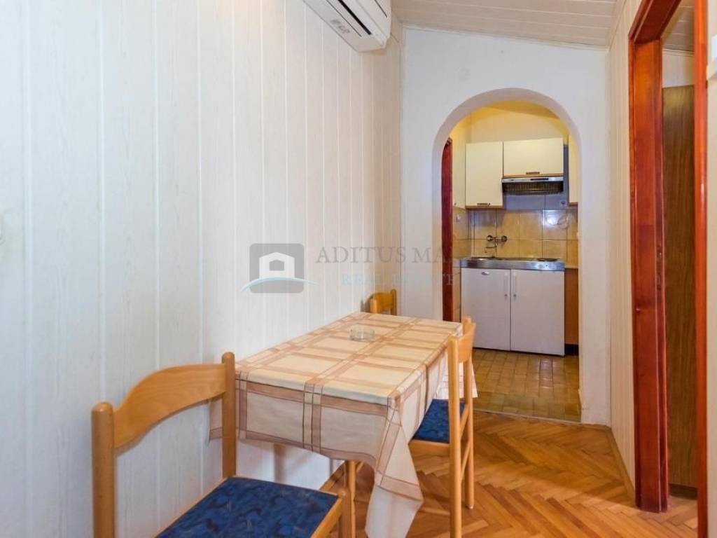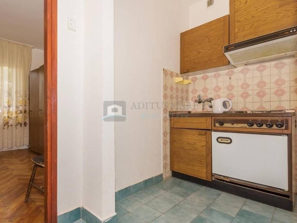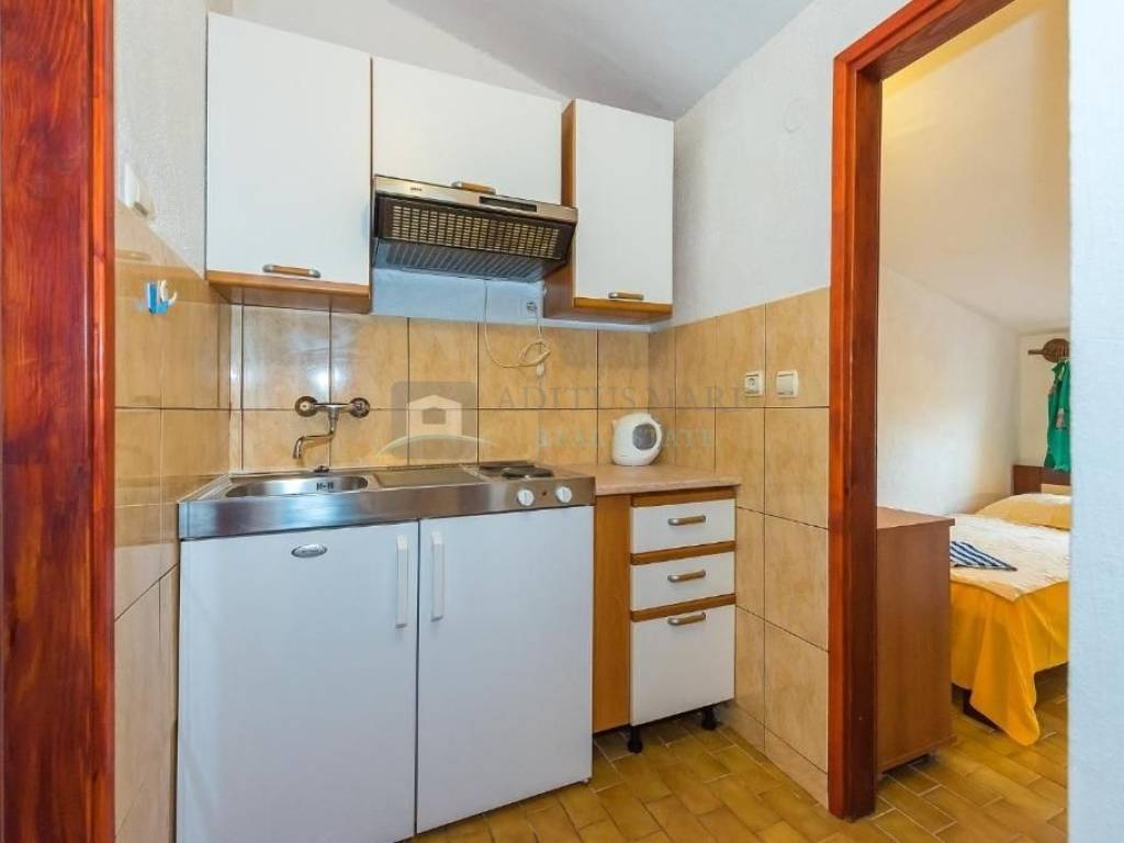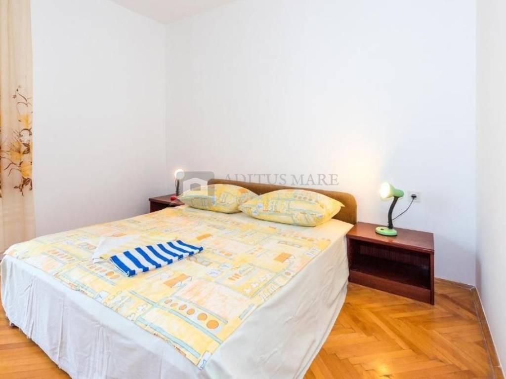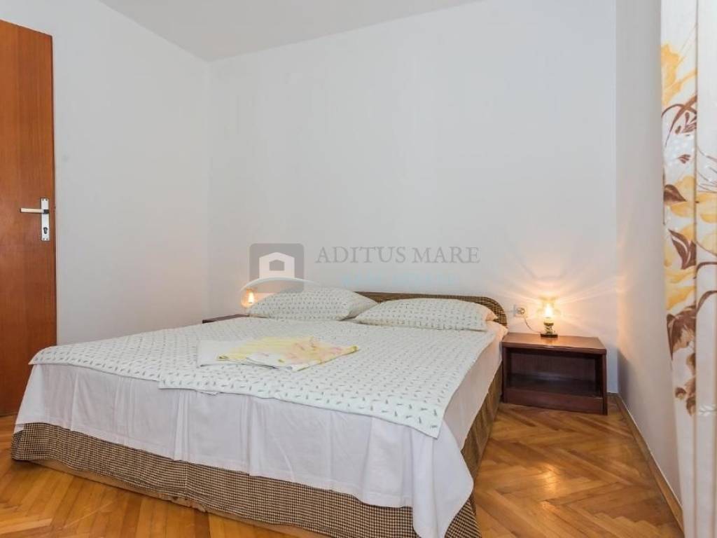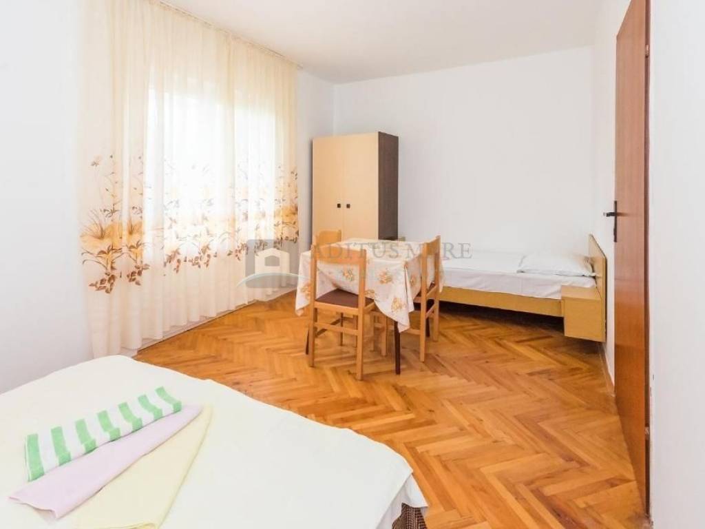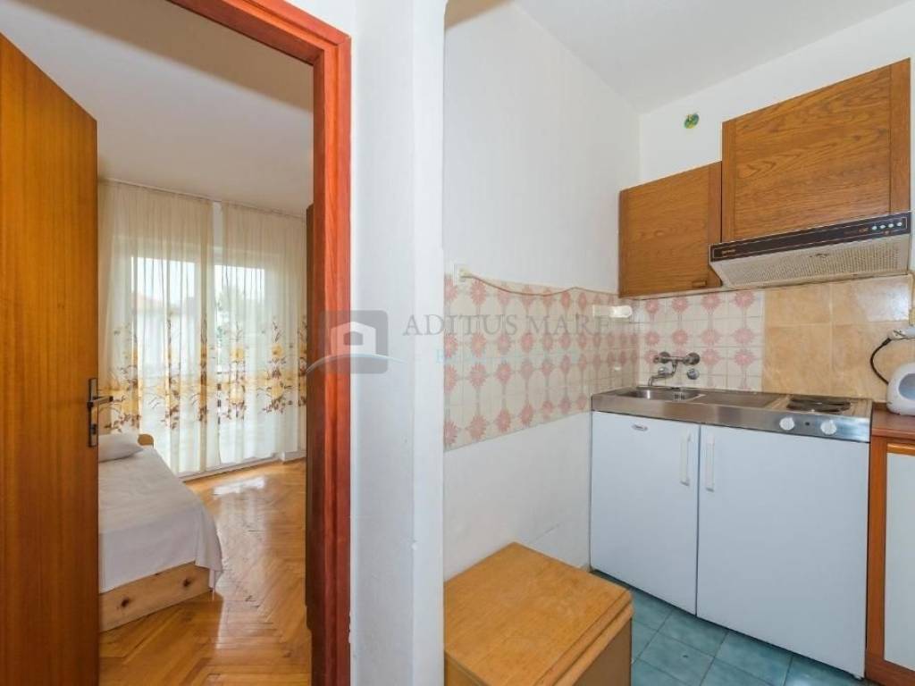 Prvi kat se sastoji od tri jednosobna i jednog dvosobnog apartmana, svaki je klimatiziran te ima balkon. -Prvom katu pripada jedna zajednička ostava.