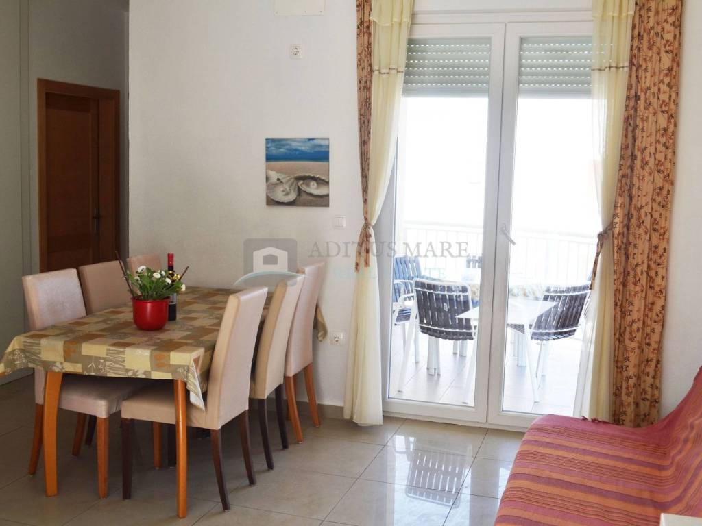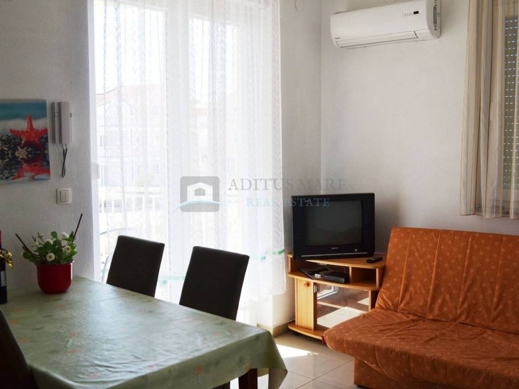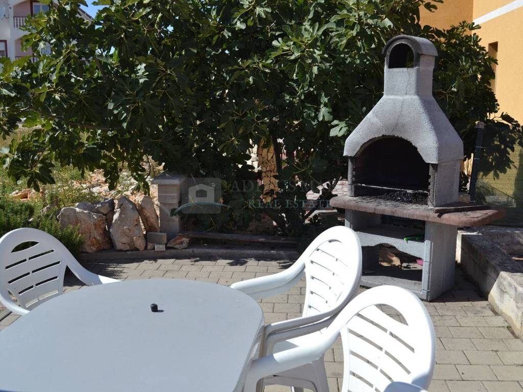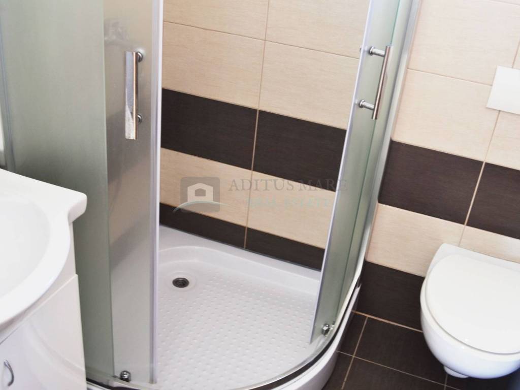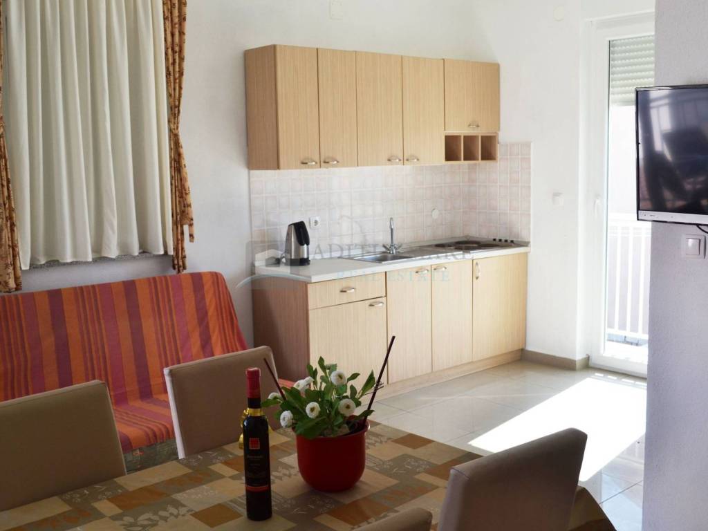 Prodaje se prostrana dvokatna kuća u Vodicama, novije gradnje. Kuća se sastoji od dva dvosobna i dva trosobna apartmana sa vlastitim kupaonicama, te velikim apartmanom na drugom katu. U svakom apartmanu nalazi se balkon i kupaonica koja mu pripada. Prostor dvorišta obogaćen je roštiljem i prikladan je za ljetne zabave. Ukupna površina je 1048.95 metara kvadratnih, a kuća je udaljena od centra Vodica cca. 1000 m, a od plaže cca. 600 m. Nalazi se na granici između Srime i Vodica stoga udaljenost od oba mjesta nije velika.