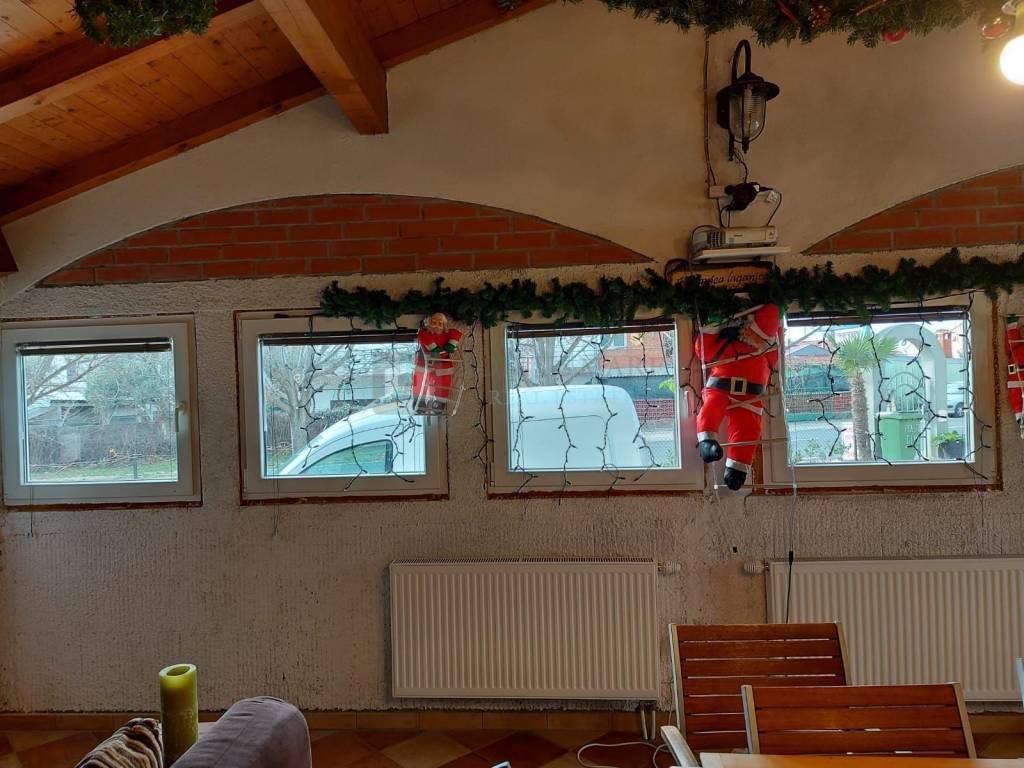 Vani se nalazi i konoba ( 45m2) koja je zamišljena kao prostor za druženje. U konobi se nalazi kamin, kuhinja, WC. Vani je mjesto za parking gdje mogu stati 3 auta.
