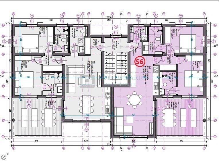 Stan S6 atraktivan 2,5-sobni stan (2S+DB) smje��ten na drugom katu moderne zgrade, ukupne korisne povr��ine 98,40 m. Stan se sastoji od prostranog dnevnog boravka s kuhinjom i blagovaonicom (30,29 m), koji se otvara na veliku natkrivenu terasu od 20,06 m, savr��enu za opu��tanje i dru��enje. Udobnost osiguravaju dvije spava��e sobe (11,84 m i 12,11 m), dvije kupaonice (5,29 m i 4,50 m), funkcionalan hodnik (4,31 m), predprostor (3,59 m) te dodatni wc/ve��eraj (2,94 m). Stanu pripadaju ��ak dva spremi��ta u podrumu, ukupne povr��ine 27,01 m, kao i vlastito parkirno mjesto.